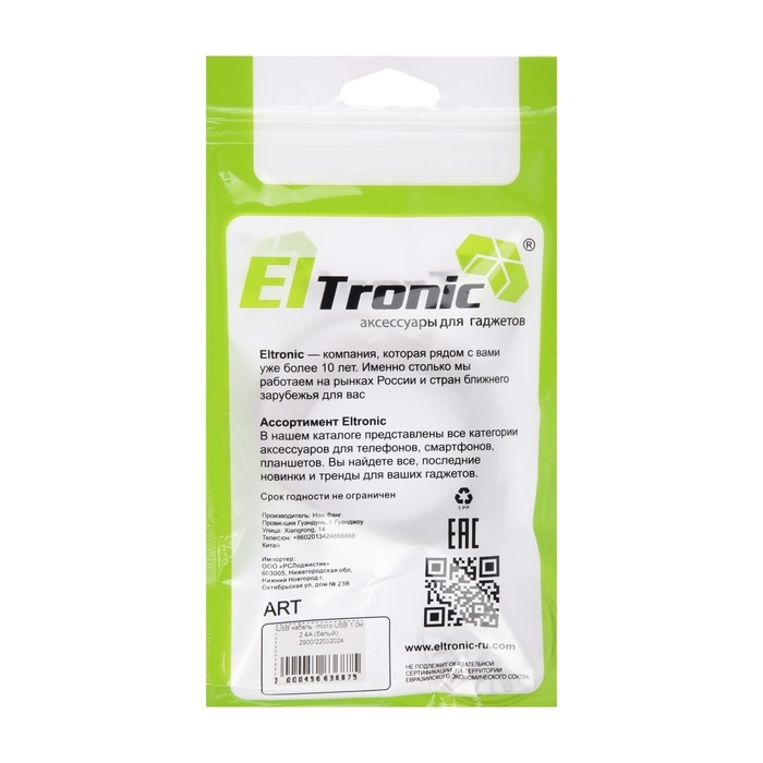 Кабель microUSB - USB, 2.4 А, 1 м, зарядка + передача данных, пакет, белый