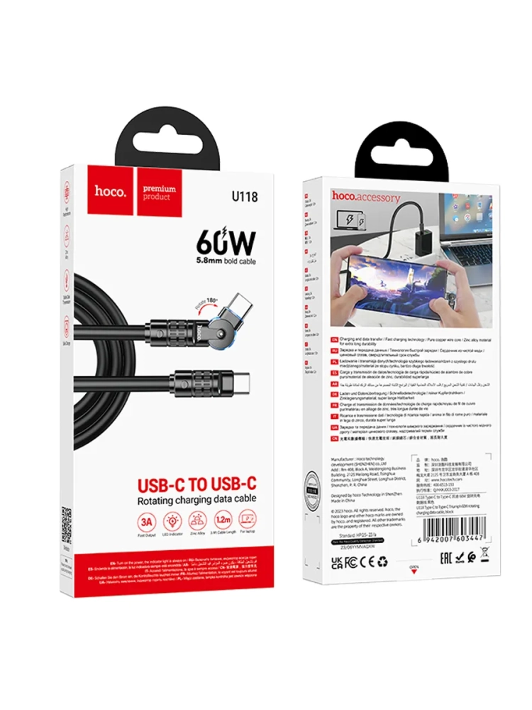 Кабель Hoco U118 USB-C to Type-C — это прекрасный выбор, как для личного использования, так и в качестве подарка. Благодаря своему высокому качеству он идеально подходит для использования в автомобиле или для повседневных нужд.