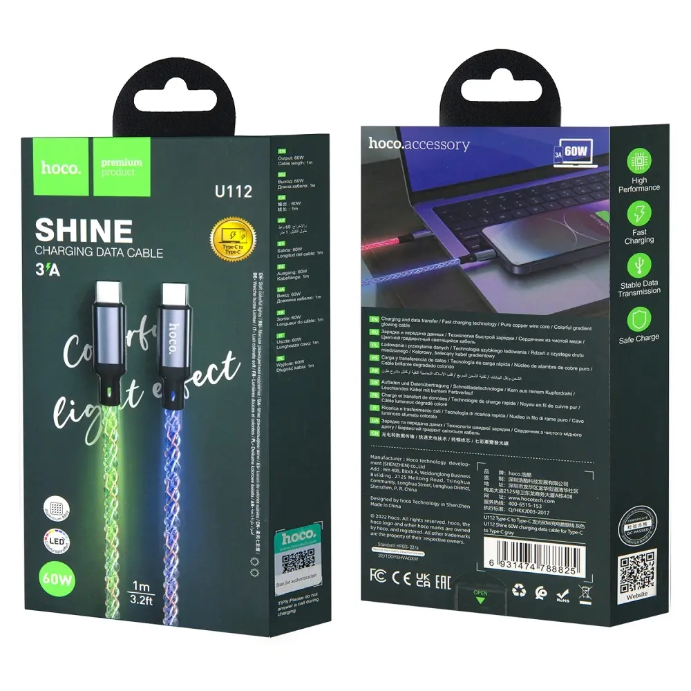 Кабель U112 Type-C на Type-C 1m 60W HOCO серый