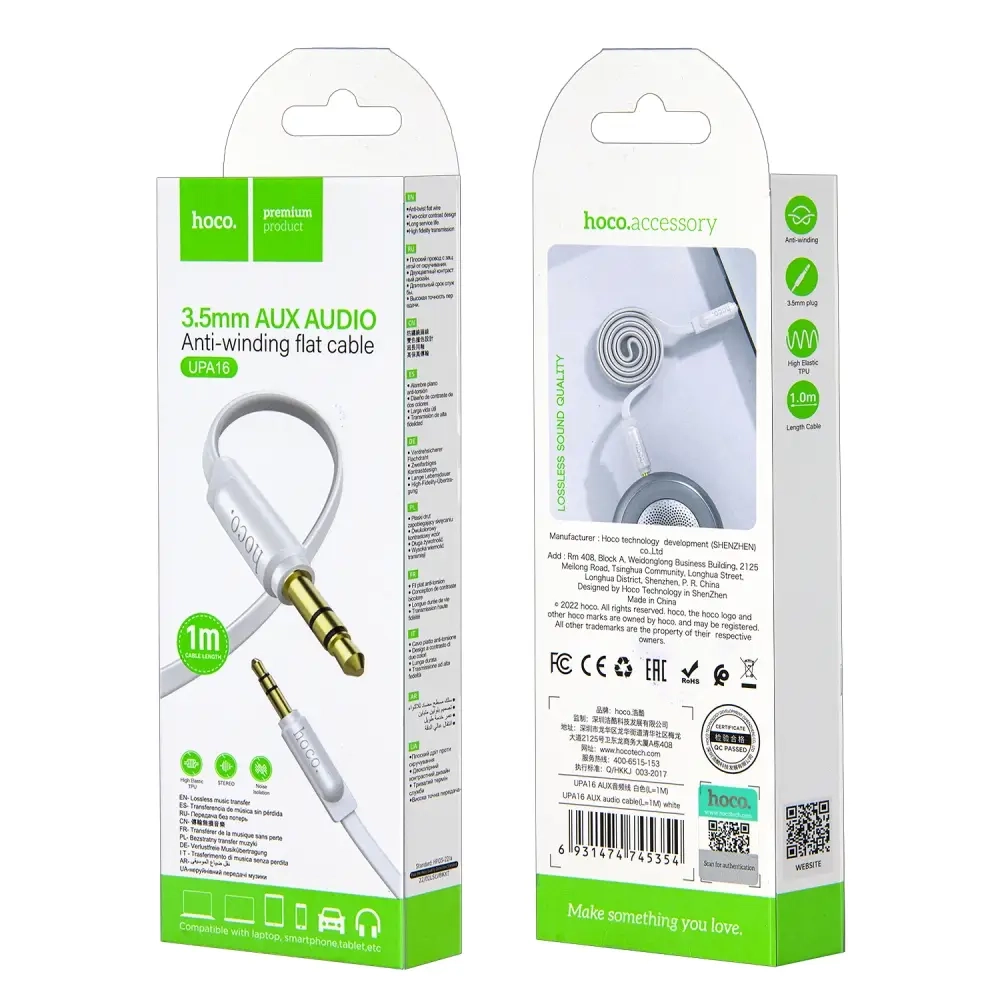 *Кабель UPA16 AUX 1M HOCO белый