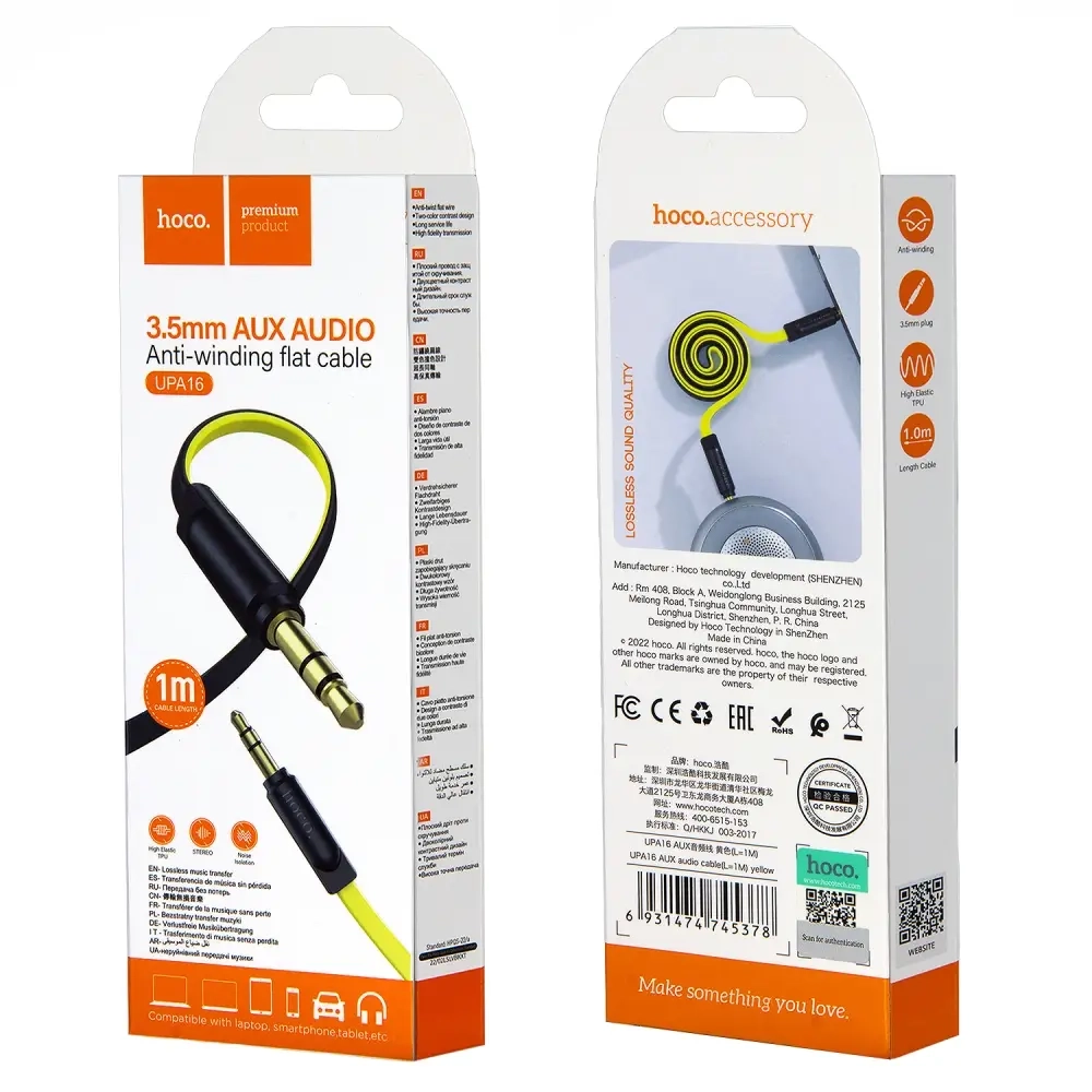 *Кабель UPA16 AUX 1M HOCO черно-желтый