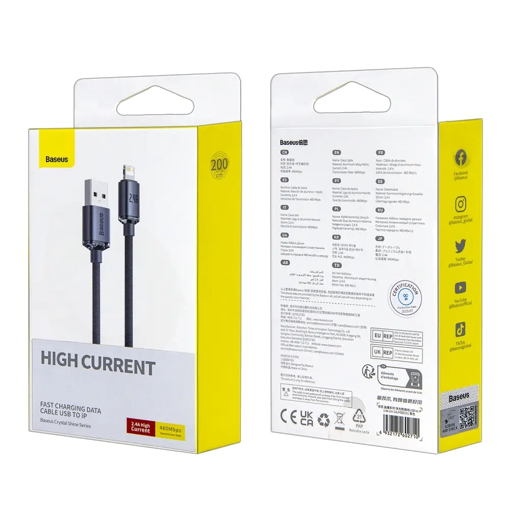 * Кабель USB Lightning 2m 20W CW-FXP Crystal Shine Series Baseus синий CAJY000101
