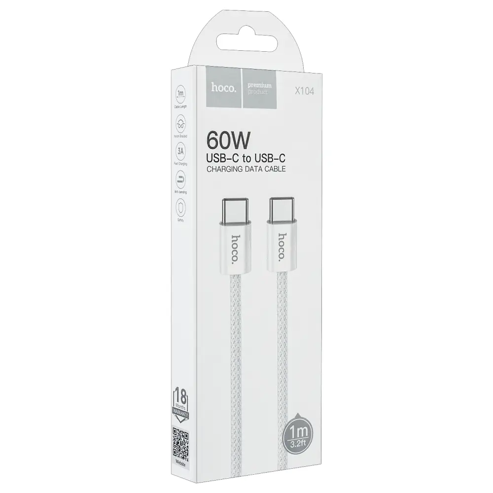 Кабель X104 Type-C на Type-C 1M 60W HOCO белый
