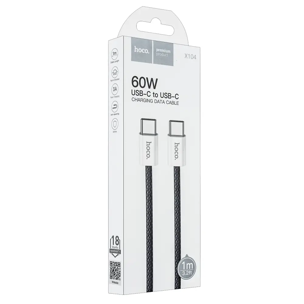 Кабель X104 Type-C на Type-C 1M 60W HOCO черный