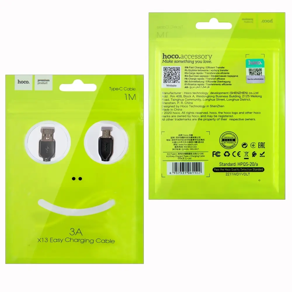 Кабель X13 USB Type-C 1m HOCO черный