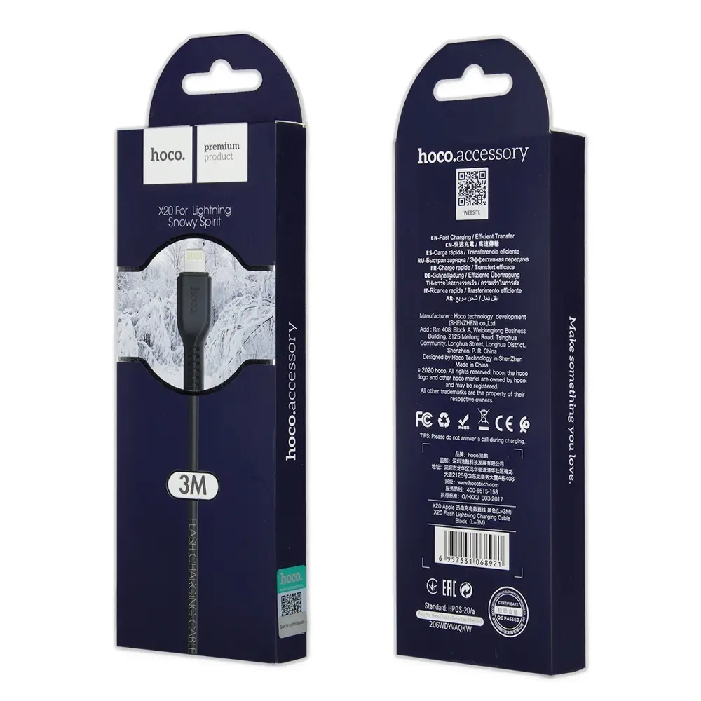 *Кабель X20 USB на Lightning 3M 2.4А HOCO черный
