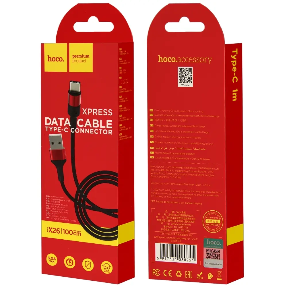Кабель X26 USB Type-C 1M HOCO черный с красным