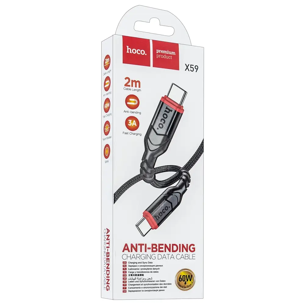 Кабель X59 Type-C на Type-C 2M 3A 60W HOCO черный