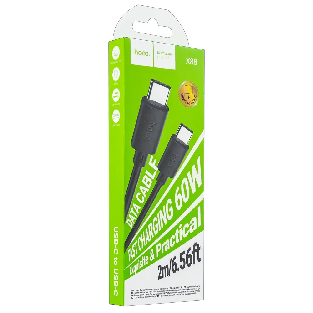 Кабель X88 Type-C на Type-C 2m 60W HOCO черный