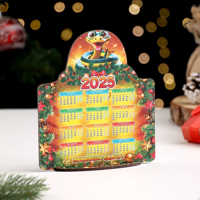 Календарь деревянный на подставке "Символ года 2025.Приношу удачу"