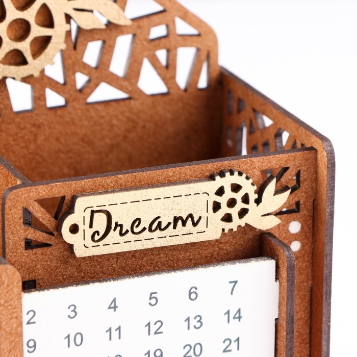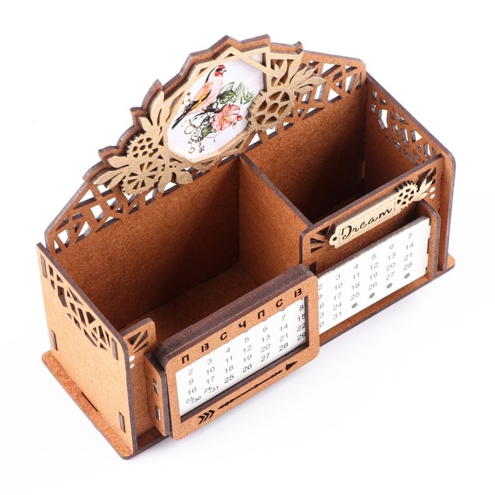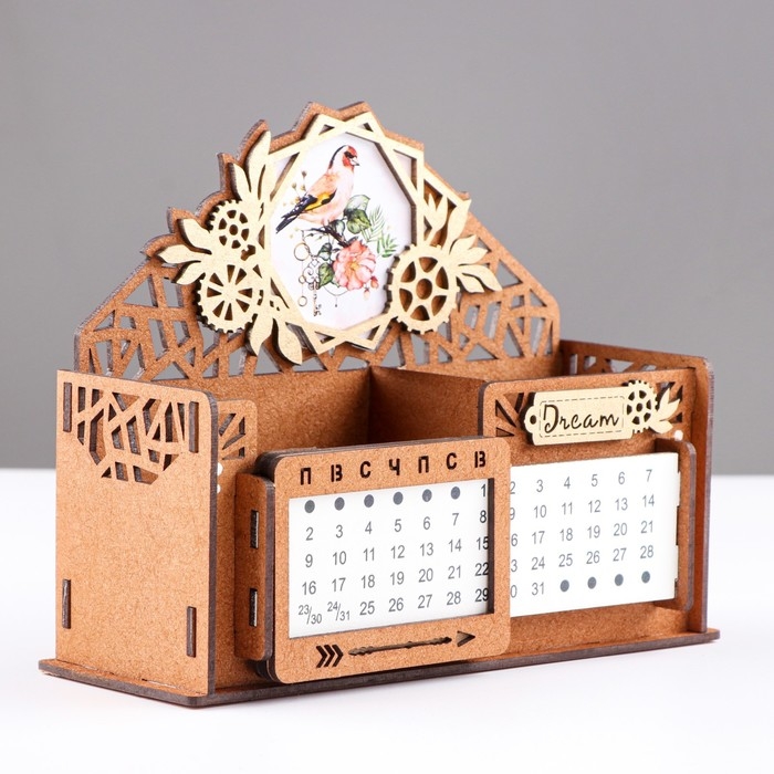 Календарь-карандашница "Птица", дуб-золото, мдф, 17х7,5х12 см