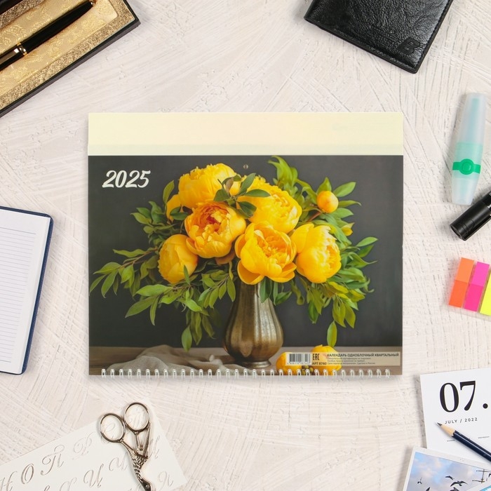 Календарь квартальный моно "Цветы" 2025 год, 30 х 46 см