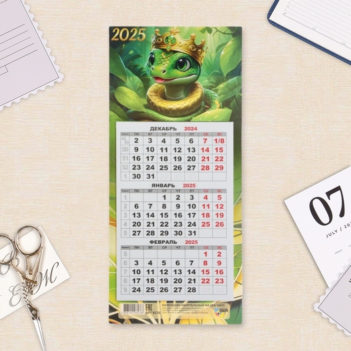 Календарь мини-трио "Символ года - 9" на магните, 2025 год, 24,5 х 11 см