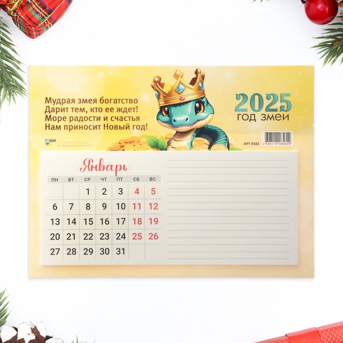 Календарь отрывной на магните "Символ года - 3" с блоком для записей, 2025 год, 15 х 20 см