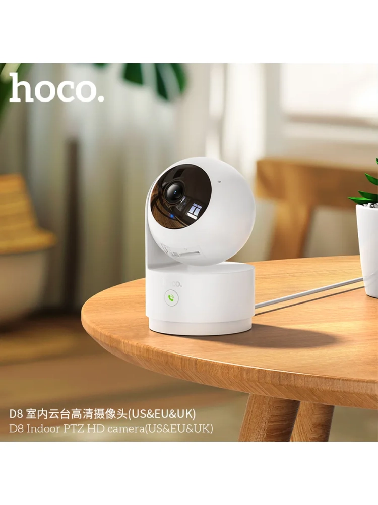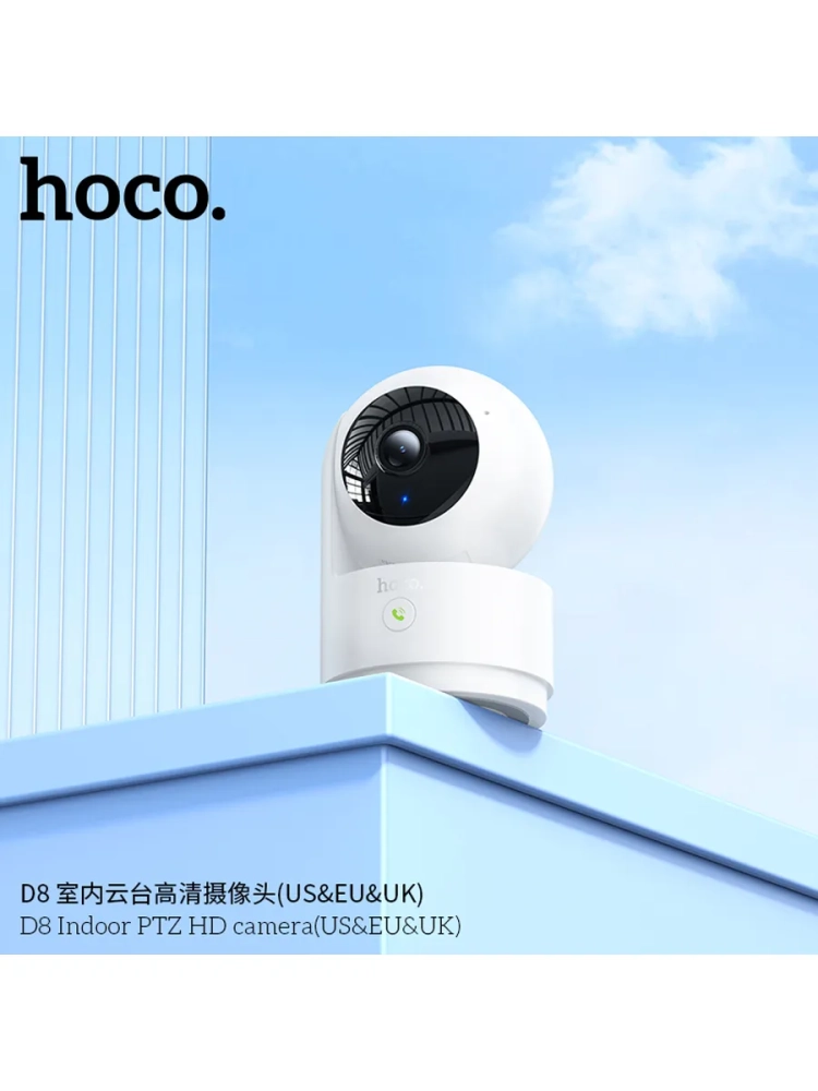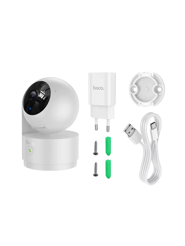 Hoco D8 - это внутренняя камера видеонаблюдения с высоким разрешением 3 МП Full HD (2304×1296), обеспечивающая чёткое изображение в любое время суток. Благодаря автоматическому переключению IR-CUT, камера идеально подходит для дневного и ночного мониторинга (поддерживает Android и iOS).
