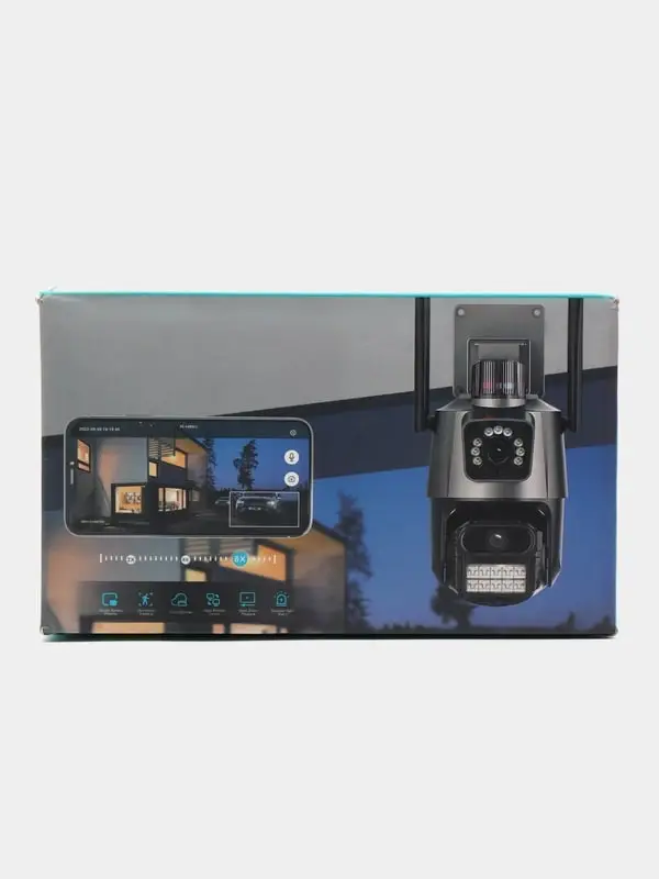 Уличная камера видеонаблюдения с двумя объективами - ваш надежный союзник в обеспечении безопасности вашего дома. Это инновационное устройство объединяет передовые функции и удобство наблюдения и контроля за вашим домом. Благодаря поддержке функции WI-FI, камера позволяет вам получать информацию используя мобильное приложение на вашем смартфоне. Вы всегда будете иметь доступ к своему видеонаблюдению, где бы вы ни находились. С данной уличной камерой видеонаблюдения вы получите видео в хорошем качестве, что позволит вам ясно и детально следить за происходящим. Камера оснащена датчиком движения и распознаванием человека в кадре, она мгновенно подаст сигнал – на ваше устройство придет уведомление. Теперь вы сможете видеть все, даже при слабом освещении благодаря функции ночного видения. Независимо от погоды, эта камера видеонаблюдения останется надежной и продолжит свою работу. Она защищена от влаги, пыли и других неблагоприятных факторов окружающей среды по стандарту IP66. Поворотная камера поддерживает карты microSD объемом до 128 Гб (КАРТА ПАМЯТИ В КОМПЛЕКТ НЕ ВХОДИТ). Безопасность вашего дома и мира вокруг вас - в ваших руках с уличной камерой видеонаблюдения.