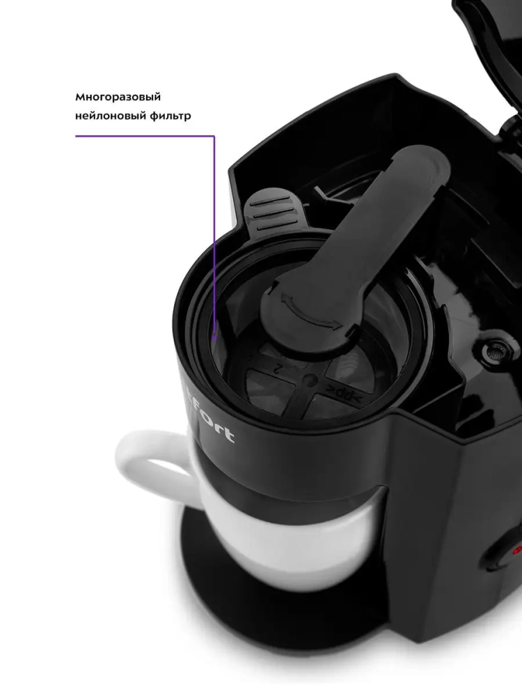 Кофеварка капельная электрическая Kitfort КТ-763 – это идеальное кухонное решение для любителей ароматного кофе. Эта кофеварка, обладая мощностью 350 Вт и объемом резервуара 0.125 л, позволяет быстро приготовить свежий напиток. Электрический механизм нагревает воду до температуры 80-90 °С, после чего она медленно проходит через фильтр с молотым кофе и попадает в кружку. Идеальный подарок на любой случай: на Новый год, 23 февраля, 8 марта, день рождения, свадьбу или юбилей! Благодаря функции автоотключения, кофеварка автоматически выключается через 7 минут после начала работы. Эта модель от Китфорт отличается компактностью и легкостью, что делает её отличным выбором для небольших кухонь или офисов. Она занимает минимум места на вашей кухне или в доме, но при этом обеспечивает качественное приготовление кофе. В комплекте идет кружка, идеально подходящая по размеру к резервуару кофеварки. Кофеварка предназначена для использования как дома, так и в офисе – она станет незаменимым помощником в создании уютной атмосферы на вашей кухне или рабочем месте. Простота управления обеспечивается одной кнопкой включения/выключения. Kitfort КТ-763 – это не просто бытовой прибор; это ваш личный мини бариста у вас дома! Наслаждайтесь вкусом свежеприготовленного молотого кофе каждый день без лишних хлопот благодаря этой надежной электрической кофеварке.