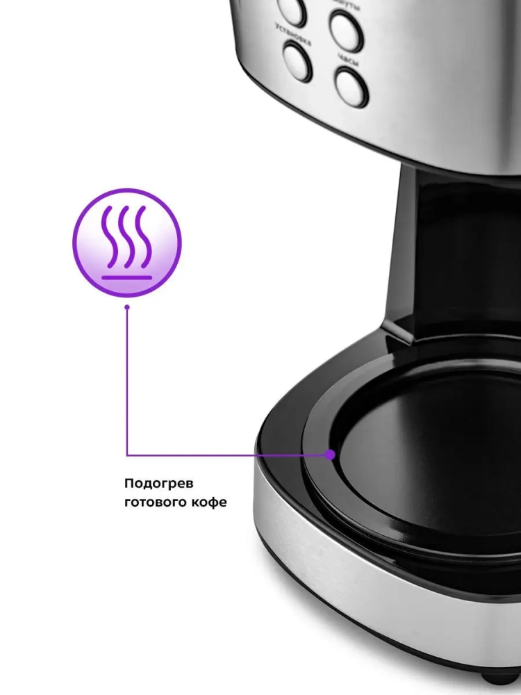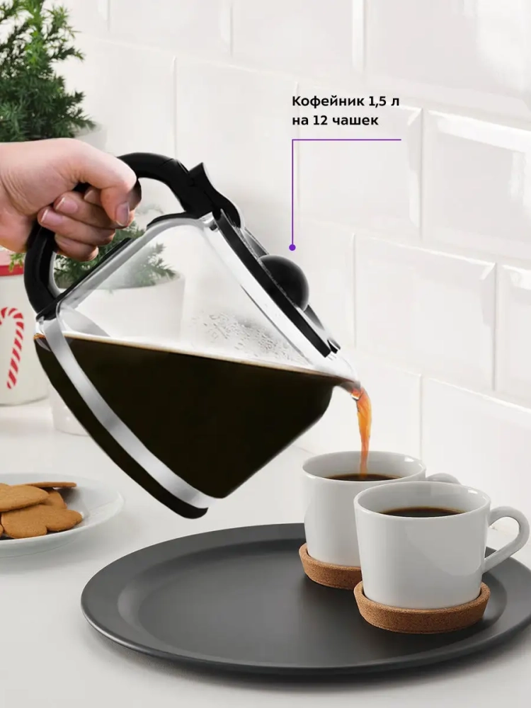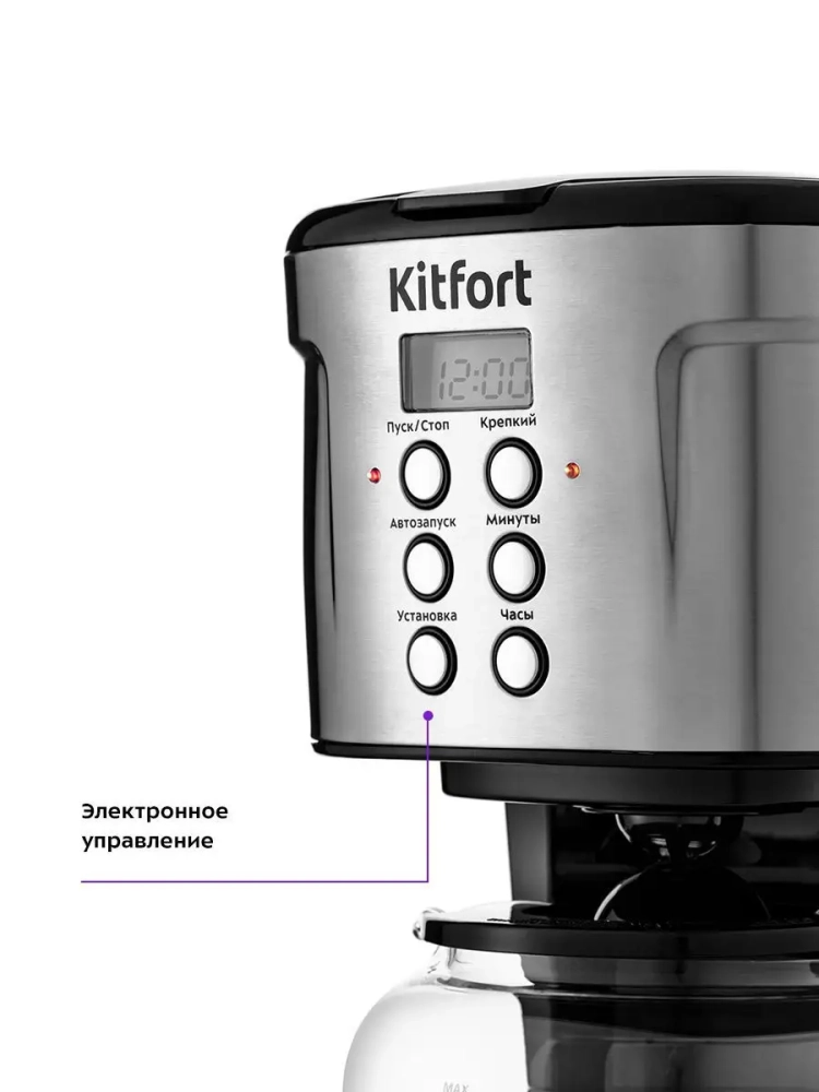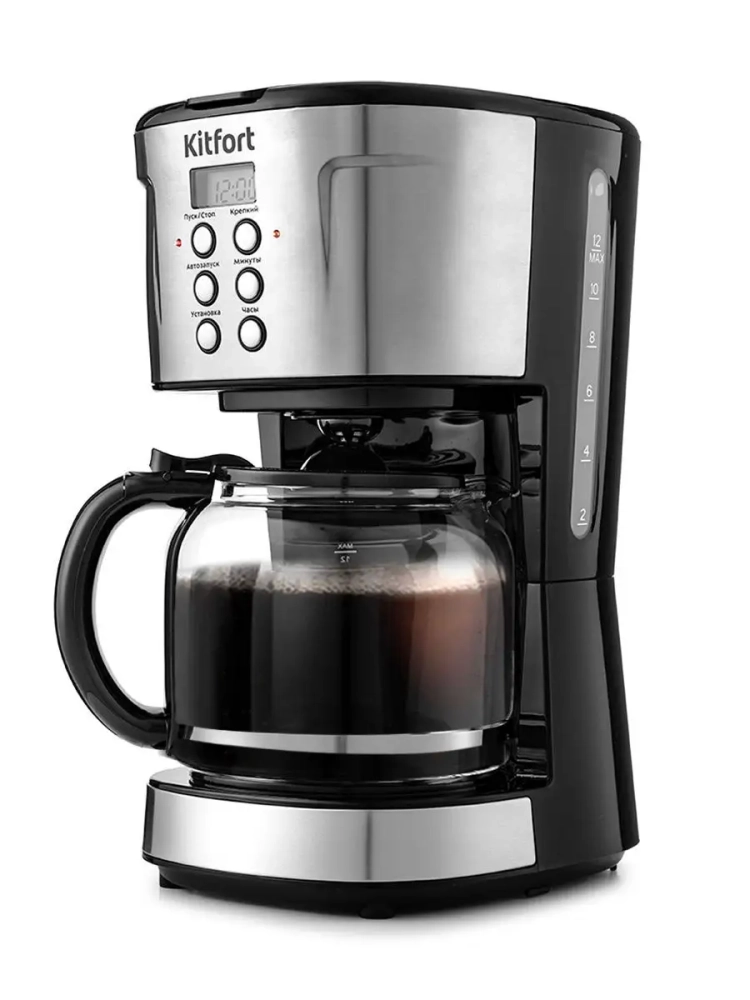 Капельная кофеварка Kitfort КТ-731 — это идеальное решение для любителей ароматного кофе. Эта кофеварка, мощностью 900 Вт и объемом 1.6 литра, позволяет приготовить до 12 чашек напитка за один раз, что делает её отличным выбором как для дома, так и для офиса. Благодаря капельной системе варки вода нагревается до температуры 80–90 °С и медленно проходит через фильтр с молотым кофе, обеспечивая насыщенный вкус. Особенностью данной автоматической модели является функция подогрева: после завершения процесса приготовления платформа поддерживает температуру готового напитка в течение 40 минут. Это удобно на кухне или в офисе, когда хочется насладиться горячим кофе без спешки. По истечении этого времени электрокофеварка автоматически отключается благодаря функции автоотключения. Кофейник оснащен противокапельной системой — затвор предотвращает проливание при вынимании его из устройства. Это позволяет наливать свежий кофе в чашку даже во время работы прибора без риска пролить драгоценные кофейные капли на кухонный стол. Прозрачный корпус кофейника дает возможность контролировать уровень оставшегося напитка, а отсек для хранения шнура обеспечивает аккуратность на вашей кухне или рабочем месте. Компактные размеры делают эту модель удобной для размещения даже в небольших помещениях. Электрическая капельная кофеварка Китфорт КТ-731 станет незаменимым мощным бытовым помощником в вашем доме или офисе благодаря своей надежности и простоте использования.