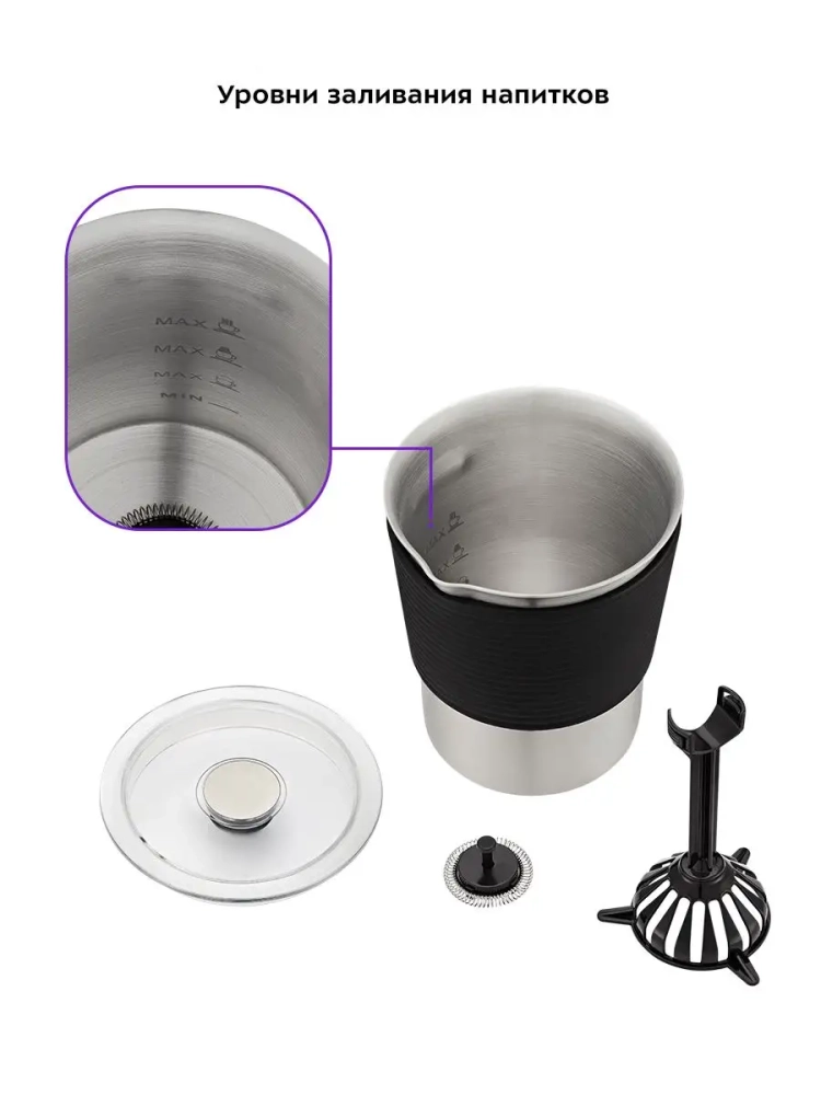 Капучинатор автоматически отключается, когда процесс взбивания или смешивания выполнен. Также вы можете остановить процесс приготовления вручную. Управление осуществляется с помощью кнопок на корпусе. Через прозрачную крышку можно наблюдать за процессом приготовления.