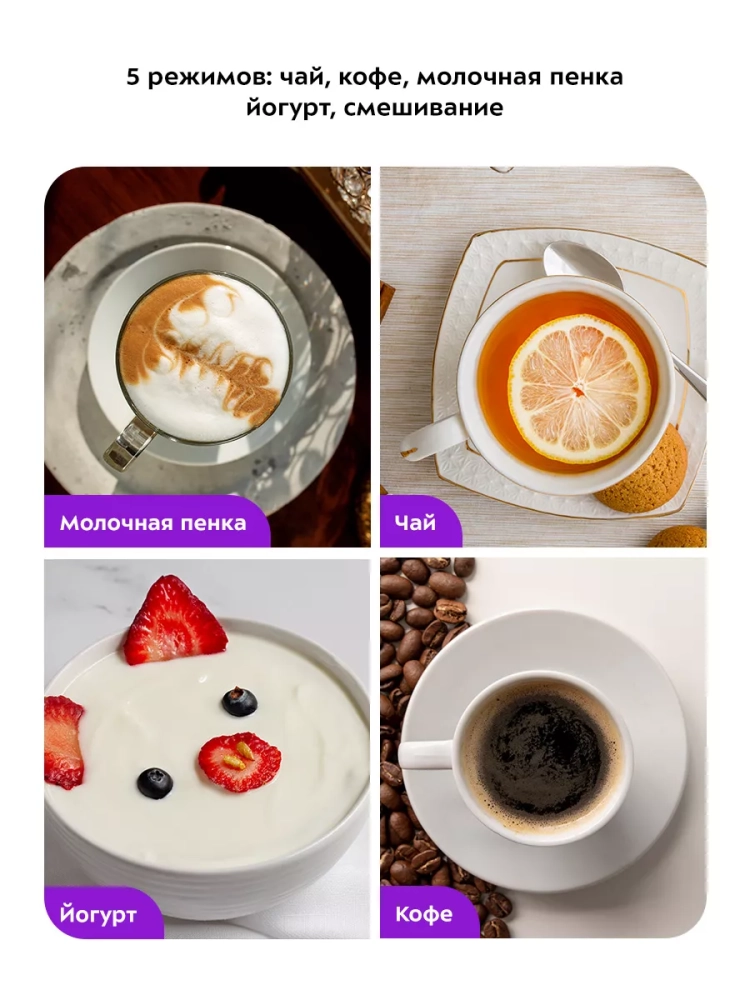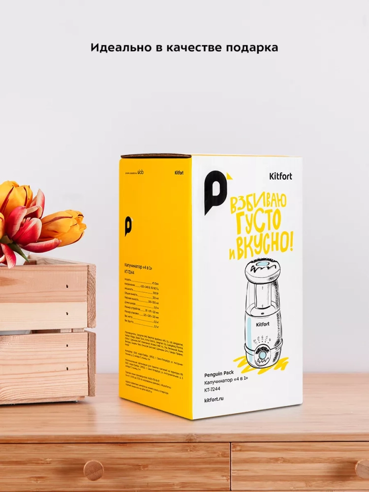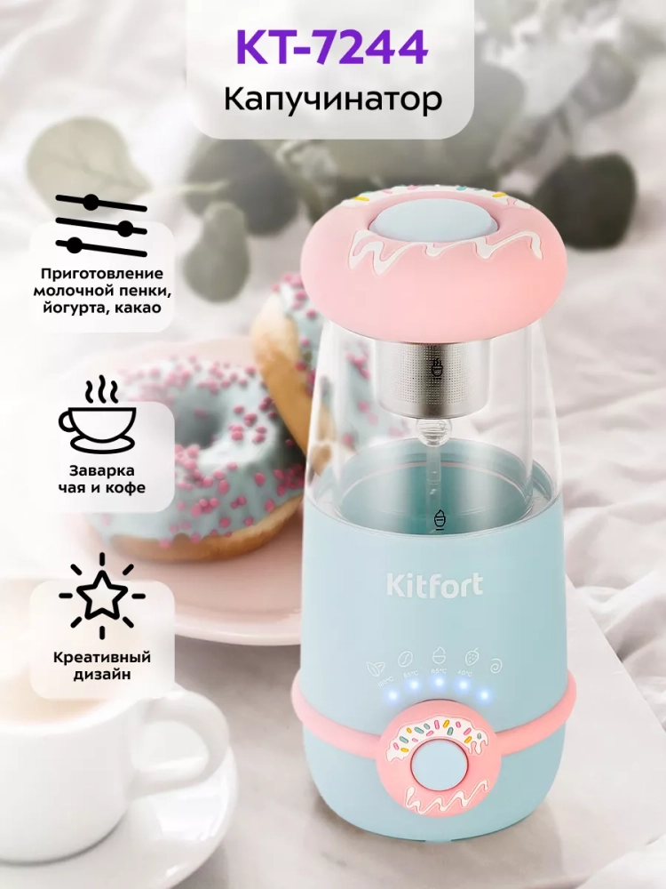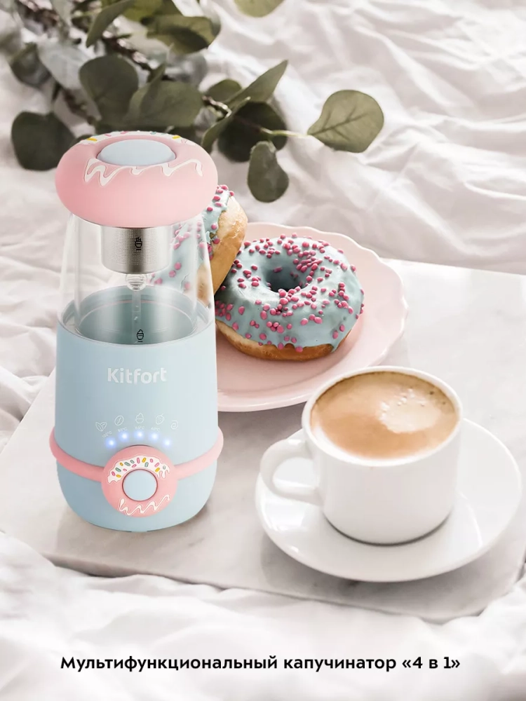 Капучинатор Kitfort КТ-7244 (4 в 1) — это устройство для приготовления молочной пенки, используемой для напитков на базе эспрессо: капучино, латте и латте макиато. Данная модель капучинатора многофункциональна и поможет также заварить разные виды чая, кофе, смешать напитки и приготовить йогурт.