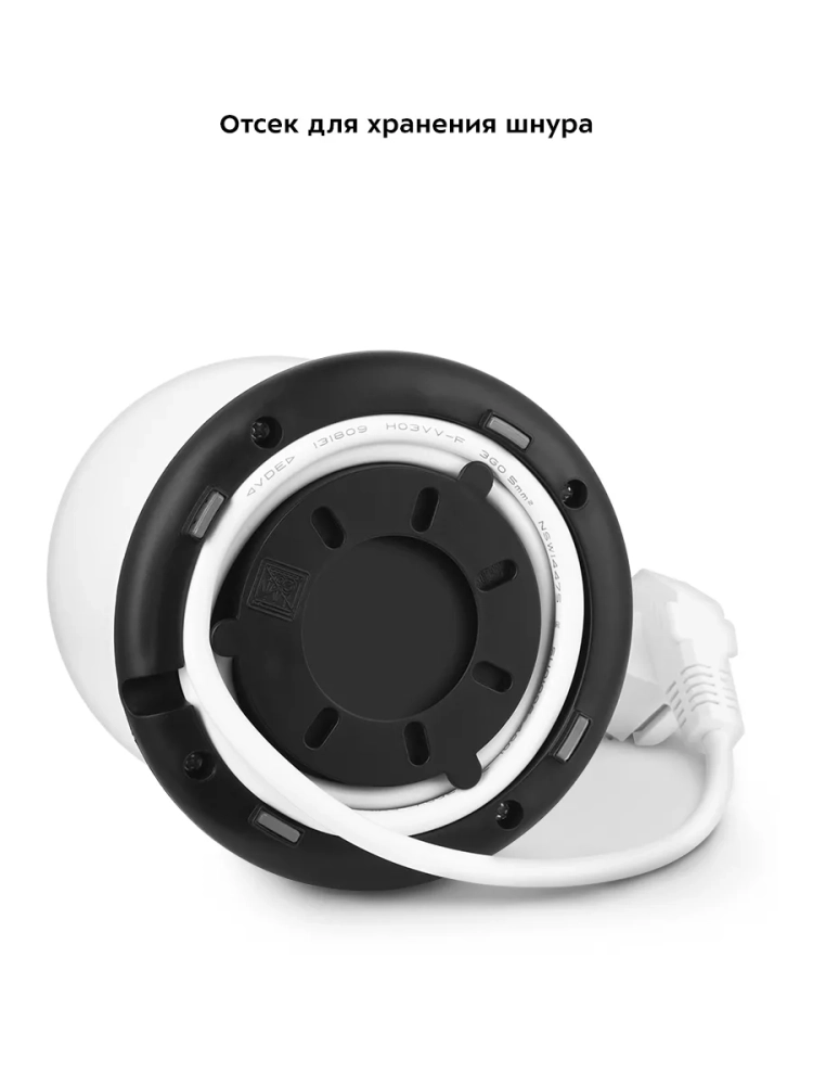 Капучинатор автоматически отключается, когда процесс взбивания или смешивания выполнен. Также вы можете остановить процесс приготовления вручную. Управление осуществляется с помощью двух кнопок на моторном блоке. Через прозрачную крышку можно наблюдать за приготовлением. Снизу моторного блока имеется отсек для хранения шнура, в который можно смотать излишки шнура электропитания, чтобы он не мешал на столе.