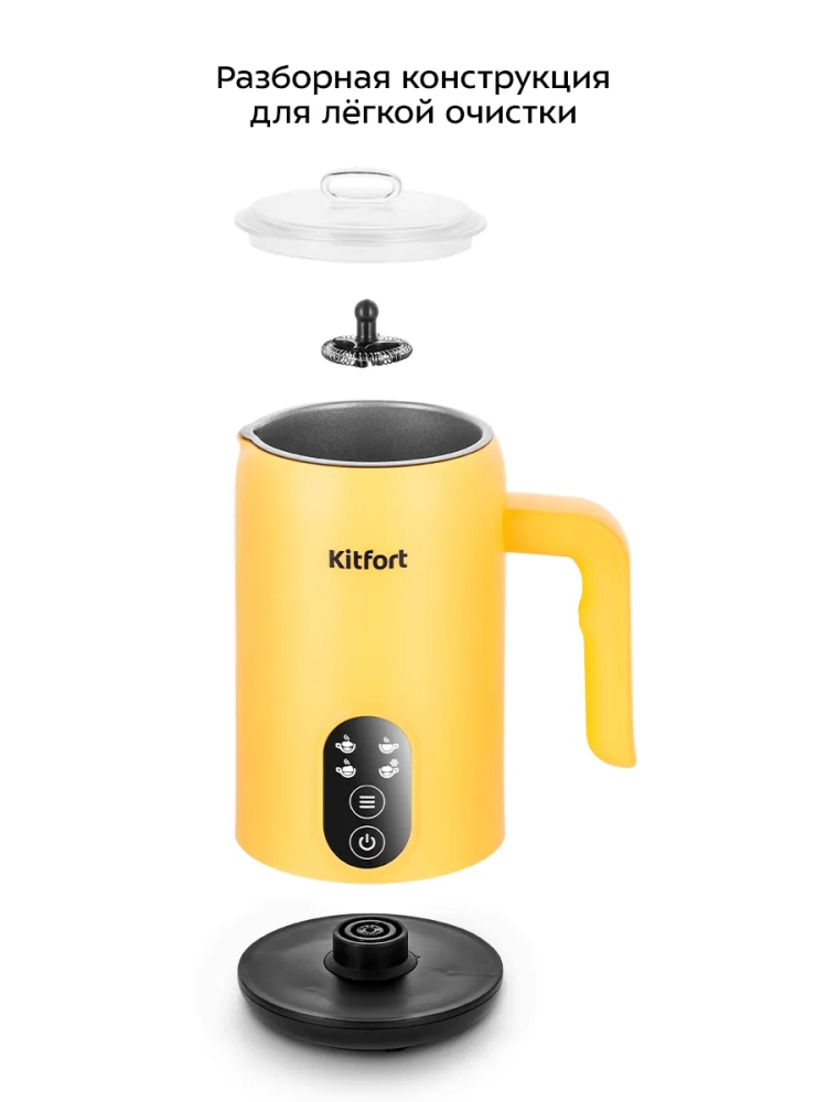 Капучинатор Kitfort КТ-7504 — это устройство для приготовления молочной пенки, используемой для напитков на базе эспрессо: капучино, латте и латте макиато. Прибор работает в 4 режимах: воздушная пенка с нагревом, смешивание с нагревом, вспенивание без нагрева и плотная пенка с нагревом.