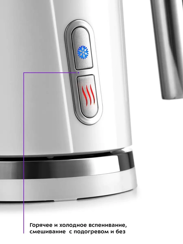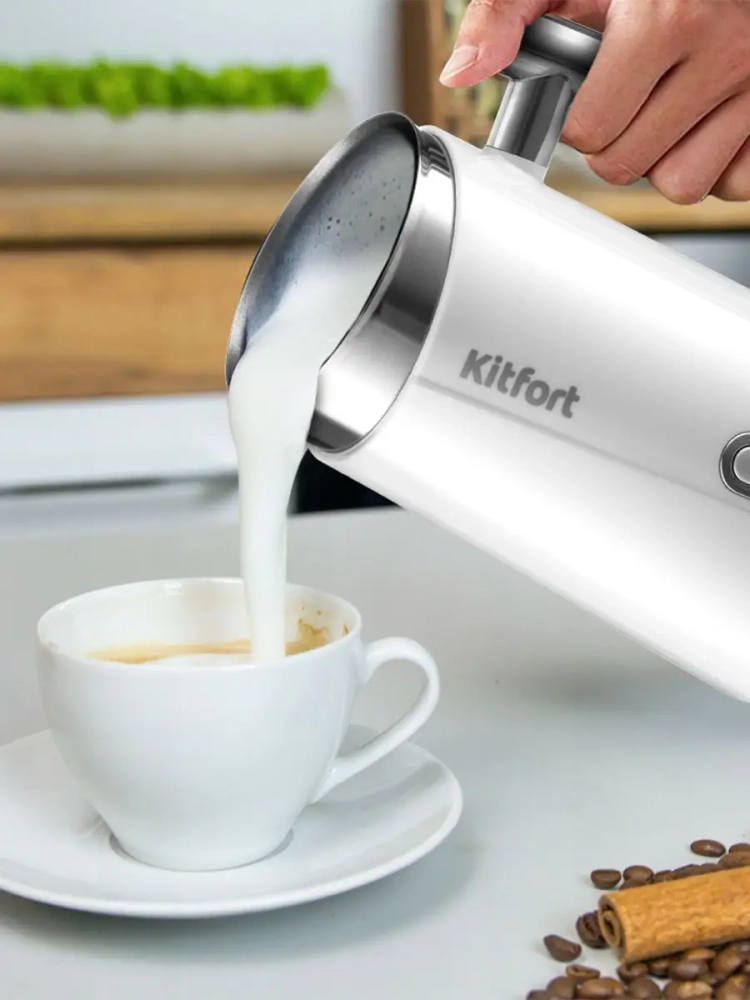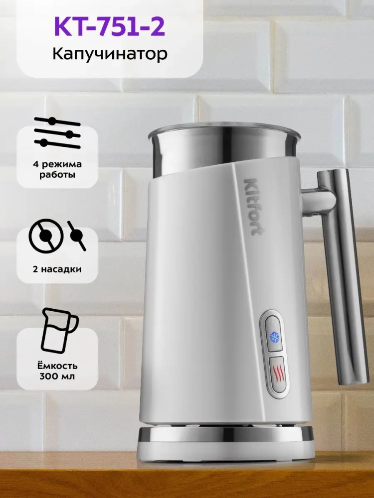Капучинатор Kitfort КТ-751 — это устройство для приготовления молочной пенки, используемой для напитков на базе эспрессо: капучино, латте и латте макиато. Прибор работает в четырех режимах: горячее и холодное взбивание, смешивание с подогревом и без.