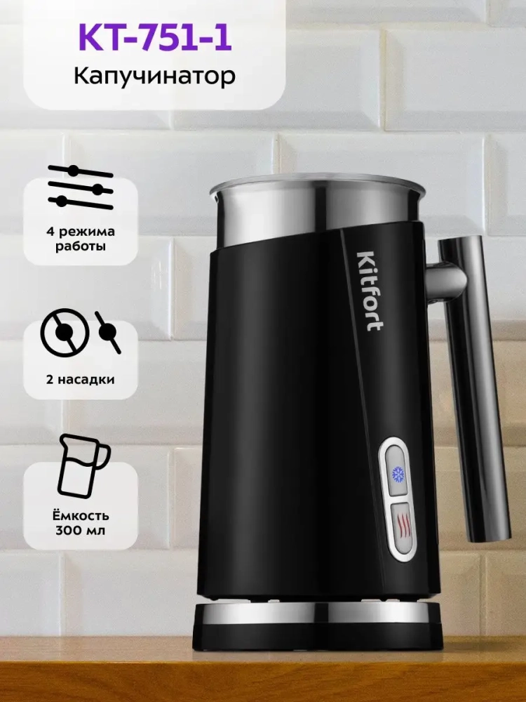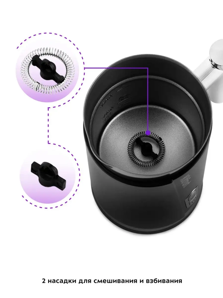 Капучинатор электрический КТ-751 - 500 Вт - 300 мл от Kitfort — это современное кухонное устройство, предназначенное для создания идеальной молочной пенки, которая станет отличным дополнением к вашим любимым кофейным напиткам на основе эспрессо: капучино, латте и латте макиато. Этот капучинатор электрический предлагает четыре режима работы: горячее и холодное взбивание, а также смешивание с подогревом и без него. Благодаря автоматическому отключению техники после завершения процесса взбивания или смешивания, вы можете быть уверены в безопасности использования. В комплекте с устройством идут две насадки: одна для взбивания молока до воздушной пены, другая — для перемешивания жидкостей. Прозрачная крышка позволяет наблюдать за процессом приготовления в реальном времени. Это делает капучинатор идеальным выбором для тех, кто не хочет тратить время на самостоятельное взбивание молока или следить за температурой. Просто наполните питчер нужным количеством молока и нажмите кнопку — через несколько минут у вас будет готова как холодная, так и горячая молочная пена. Кроме того, этот вспениватель молока подходит не только для кофе; он также может использоваться как аппарат для приготовления смеси детской или какао. Если вы ищете надежный капучинатор электрический для молока или даже рассматриваете вариант аккумуляторного устройства типа pioneer либо ручного варианта — этот прибор станет отличной альтернативой благодаря своей функциональности и простоте использования.