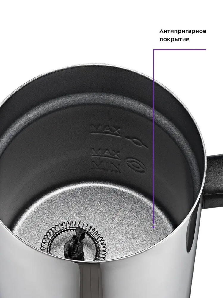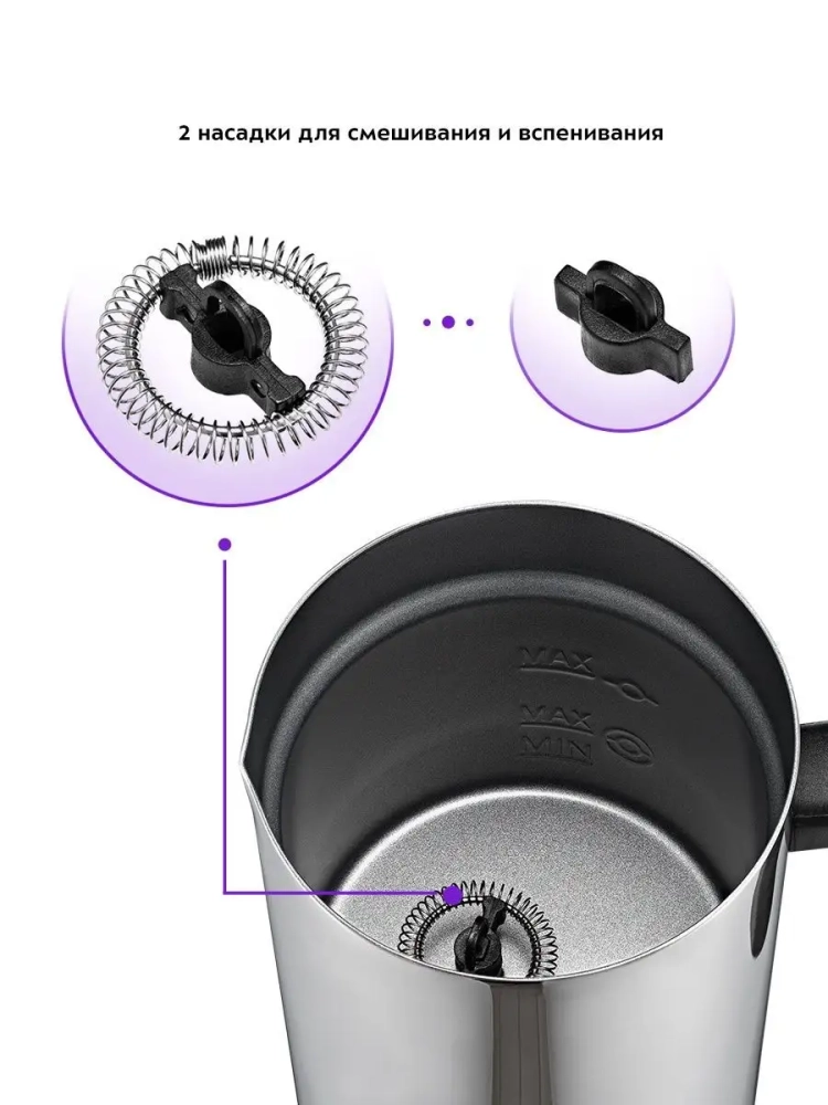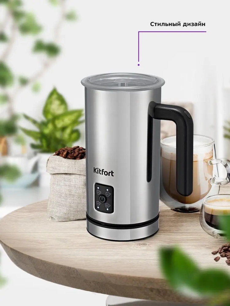 Капучинатор электрический КТ-758 от Kitfort — это незаменимый гаджет для кухни, который поможет вам приготовить идеальную молочную пенку для ваших любимых кофейных напитков. Этот капучинатор электрический предназначен для использования с кофе, таких как капучино, латте и латте макиато. Устройство работает в четырех режимах: горячее и холодное вспенивание, а также смешивание с подогревом и без него. Это делает его универсальным инструментом на вашей кухне. Капучинатор автоматически отключается после завершения процесса вспенивания или смешивания, что обеспечивает безопасность использования. В комплекте идут две насадки: одна для вспенивания молока и другая для его смешивания. Прозрачная крышка позволяет не просто взбивать но и наблюдать за процессом приготовления пенки. Этот капучинатор электрический идеально подходит тем, кто не хочет тратить время на освоение сложного процесса самостоятельного взбивания молока или следить за температурой жидкости. Просто налейте нужное количество молока в устройство и нажмите кнопку — через несколько минут вы получите густую холодную или горячую пену. Кроме того, этот капучинатор можно использовать не только как вспениватель молока; он также отлично справляется с приготовлением какао и смешиванием различных жидкостей. Это делает его многофункциональным прибором среди товаров для кухни и дома. Если вы ищете надежные гаджеты или просто хотите пополнить свою коллекцию кухонных аксессуаров современным устройством, то этот капучинатор аккумуляторный станет отличным выбором! Он сочетает в себе функции ручного венчика для взбивания электрического типа китфорт с удобством автоматического управления.