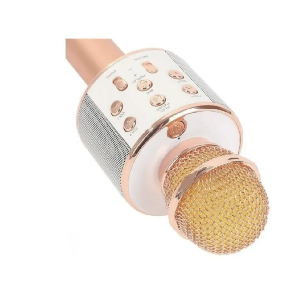 Вы ищете подарок для своего ребенка и праздника всей компании? Посмотрите на оригинальный детский беспроводной bluetooth караоке-микрофон Wster WS-858 в цвете розового золота! Этот высококачественный микрофон, в стильном цвете и дизайне подойдет для девочек и девушек. Микрофон изготовлен из прочного пластика. Отлично подойдет для детского караоке не только как микрофон игрушка но и как вокальный микрон для взрослых. Он оснащен двумя регулируемыми настройками громкости, встроенным динамиком мощностью 5 Вт, чтобы все могли наслаждаться пением. Есть режим реверберации (эхо), почувствовав себя на настоящей сцене, и четыре типа звукового эффекта. Кроме того, он имеет длительный срок службы батареи 1500 мАч. Соединение Bluetooth позволяет транслировать ваши любимые песни с телефона или планшета прямо на микрофон. Все эти функции позволят Вам почувствовать себя профессиональными певцами. Этот караоке-микрофон идеально подходит не только для вечеринок, но и для семейного пения дома. Благодаря простой настройке вы можете сразу же приступить к пению, не беспокоясь о технических проблемах. Будьте счастливы не просто исполнить композицию, но и записать Ваш голос для последующего прослушивания. Запись голоса на беспроводной вокальный микрофон возможна на Ваш телефон или карту micro CD. Сохрани свое хорошее настроение на беспроводной динамический караоке микрофон с колонкой. Мы убеждены, что детский оригинальный Bluetooth караоке-микрофон Wster WS-858—это замечательный подарок, который принесет радость и развлечение по любому поводу. Будь то вечеринка по случаю дня рождения или просто семейный праздник, этот караоке-микрофон позаботится о том, чтобы все получили невероятное удовольствие. Приобретай беспроводные микрофоны для вокала в разных цветах для детей и взрослых! Микрофон относится к сложному техническому товару, и обмену и возврату не подлежит. Убедительно просим вас проверять Микрофон сразу на ПВЗ!
