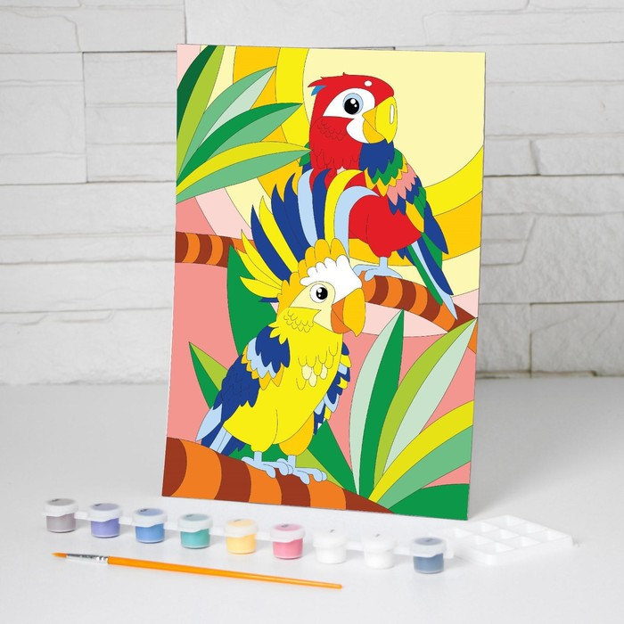 Картина по номерам для детей «Попугаи», 20 х 28,5 см