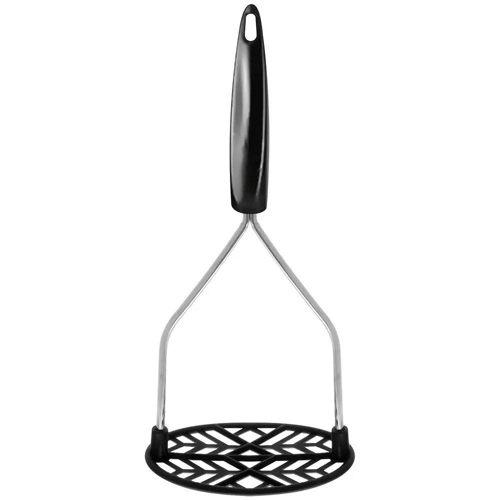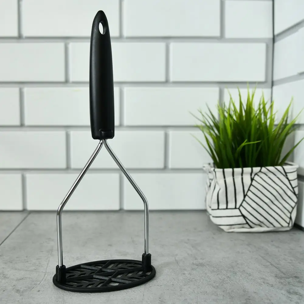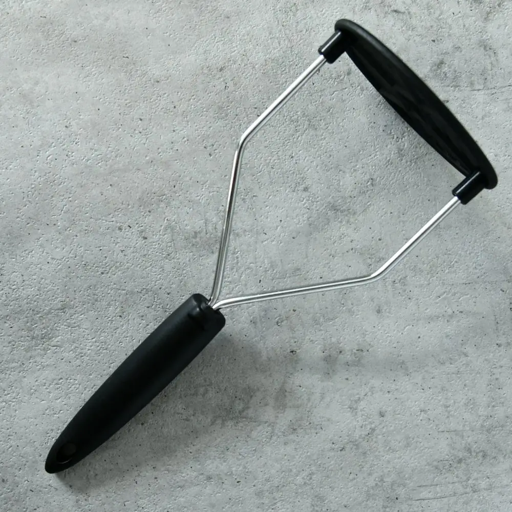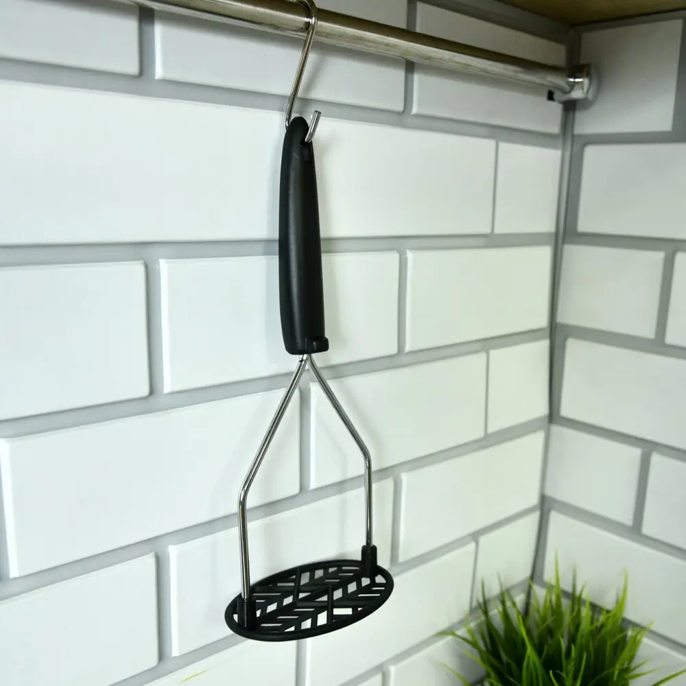 Использование картофелемялки делает пюре мягким и воздушным. Если под рукой нет блендера, картофелемялка «Софт» станет для вас незаменимым помощником. Инструмент имеет классическую конструкцию — толкушку с прорезями и ручку. Равномерно нажимайте рабочей частью на вареные овощи и мните до тех пор, пока не добьетесь равномерной консистенции. Рабочая часть изготовлена из пластмассы (нейлон), что дает большое преимущество этой модели при работе с антипригарной посудой. Нейлон рассчитан на высокие температуры, следовательно, не будет портится при взаимодействии с горячими продуктами. Ручка из хромированной стали удобна в использовании, имеет отверстие, за которое можно повесить изделие на крючок.