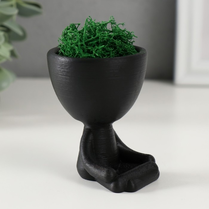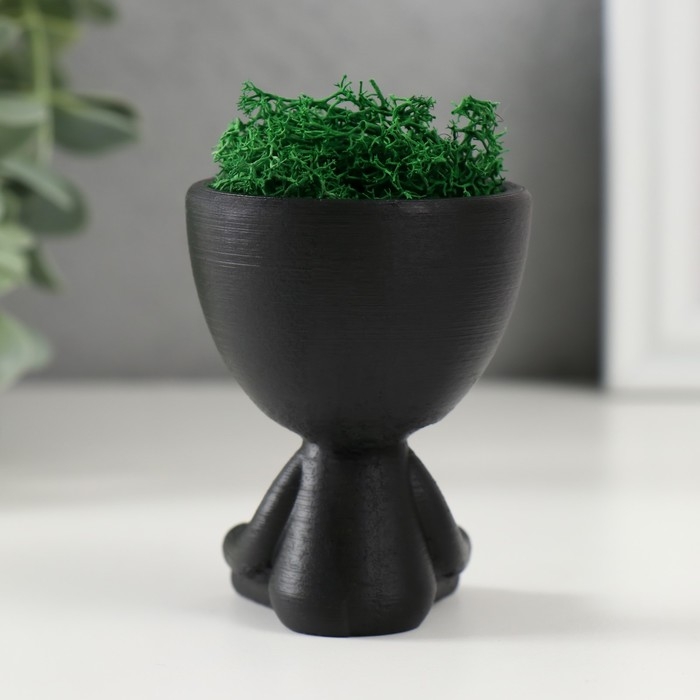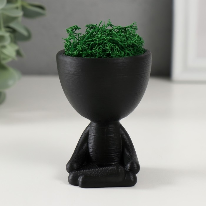 Кашпо бетонное мини "Мистер Грин йог"со мхом черный 5,3х6х7 см (мох зеленый стабилизир.)