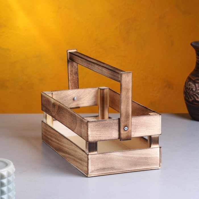 Кашпо деревянное 24.5×13.5×9 см "Двушка Лайт", двухреечное, обжиг Дарим Красиво
