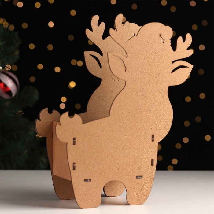 Кашпо деревянное новогоднее "Оленёнок" 28х22,5х8,5 см орех