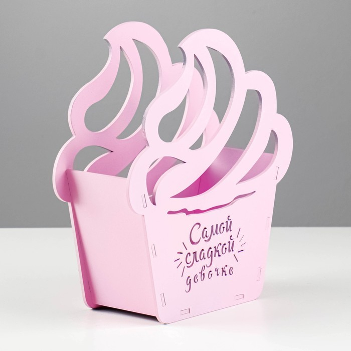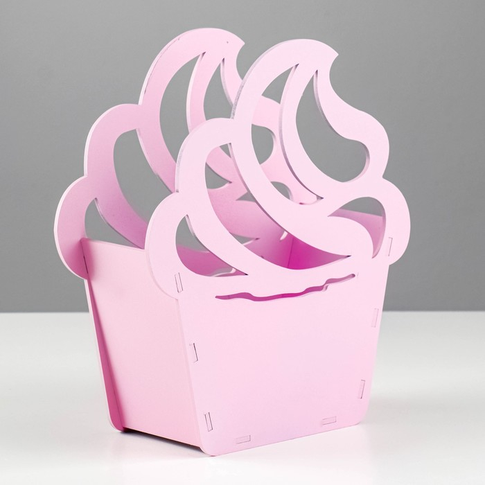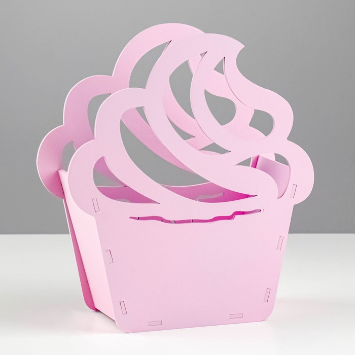 Кашпо деревянное "Пироженка" 21,5х19х7,6 см розовый