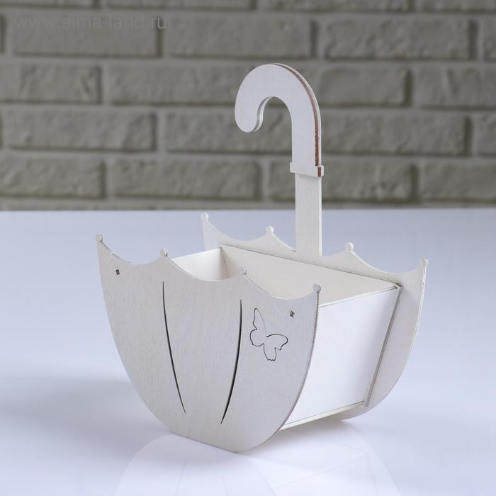 Кашпо деревянное "Зонтик с подвесом", белый, 19×9×21.5 см