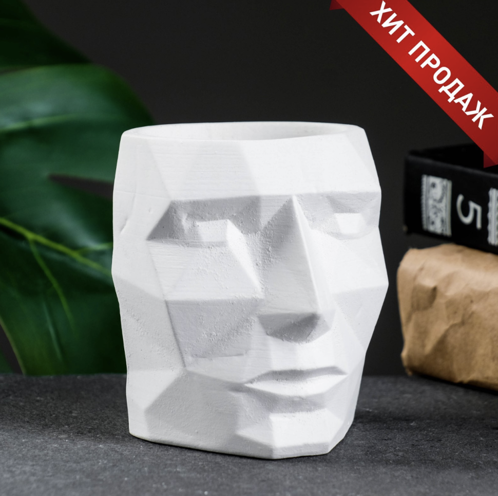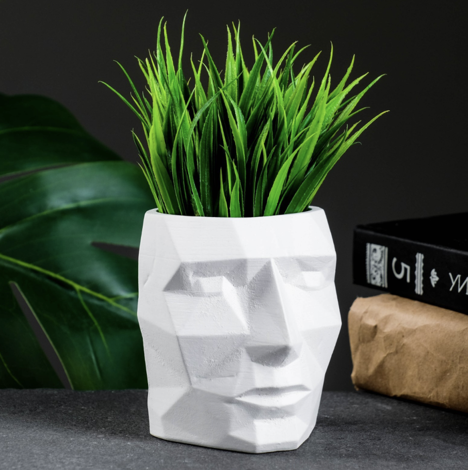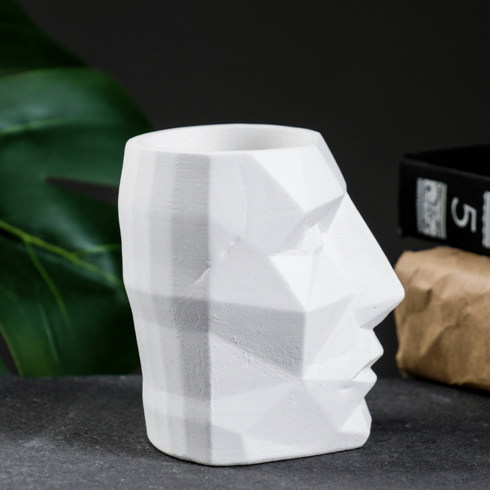 Кашпо - органайзер "Геометрическая голова" белое, 0,15 л / 9х9х7,5см