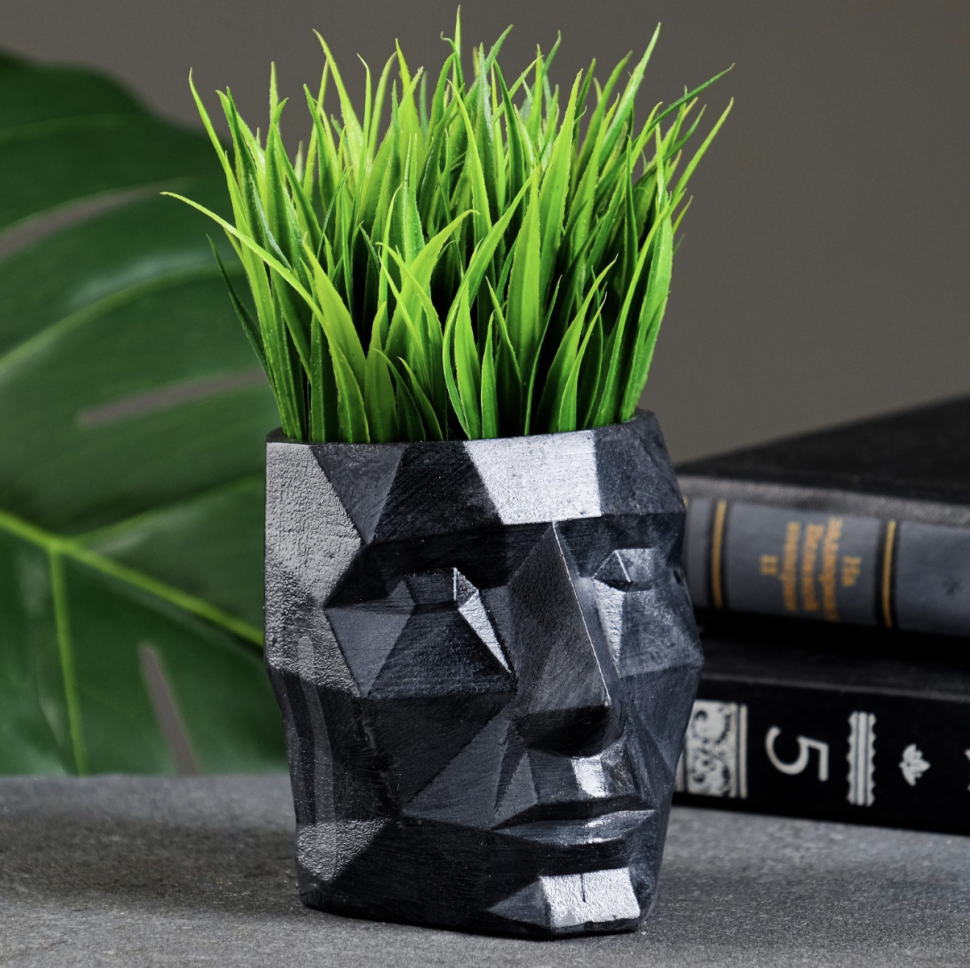 Кашпо - органайзер "Геометрическая голова" черное, 7,5х8,5х7см