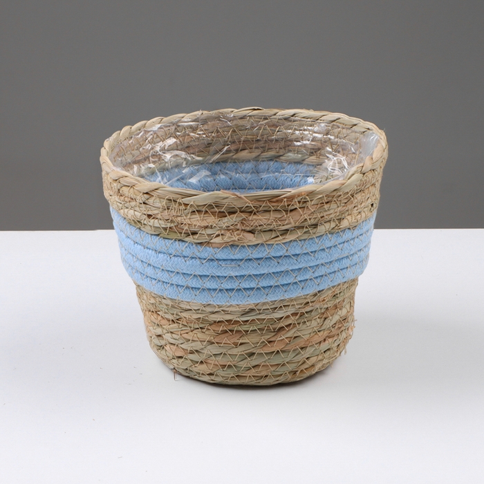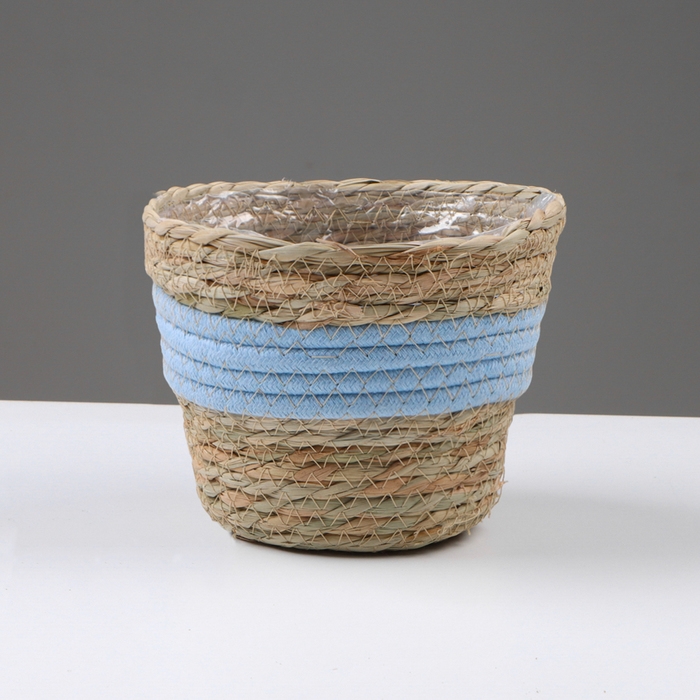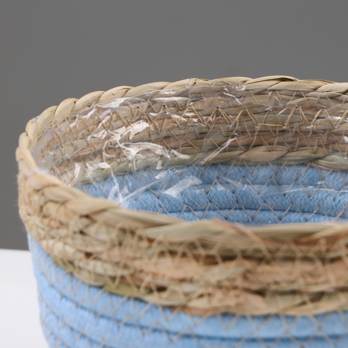 Кашпо плетеное "Намибия", 15,5х15,5х13,5 см, натуральный, голубой