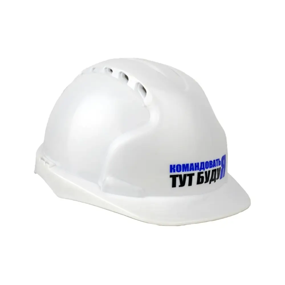 Каска Эталон (КОМАНДОВАТЬ ТУТ БУДУ Я) обеспечивает надежную защиту головы от механических воздействий и кратковременных контактов с электрическими проводниками (напряжение до 1000 В). Каска выдерживает удары энергией 49 Дж, используется при пониженных и повышенных температурах (от -50С до +50С). Корпус каски Эталон со сплошным козырьком изготовлен из нетоксичного ударопрочного полипропилена. Удобный храповик регулирует размер, и, кроме того, есть возможность регулировать глубину посадки каски. Благодаря конструкции каска хорошо проветривается.