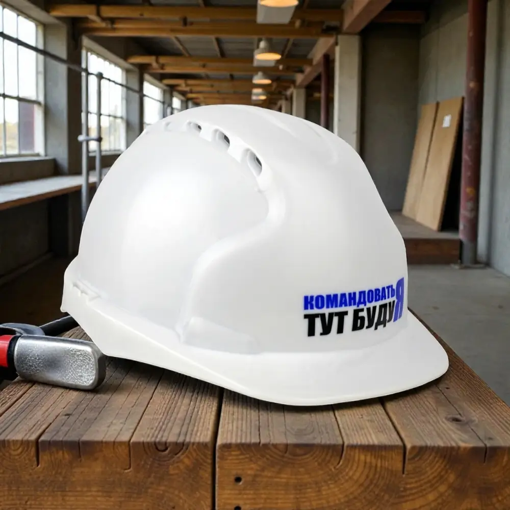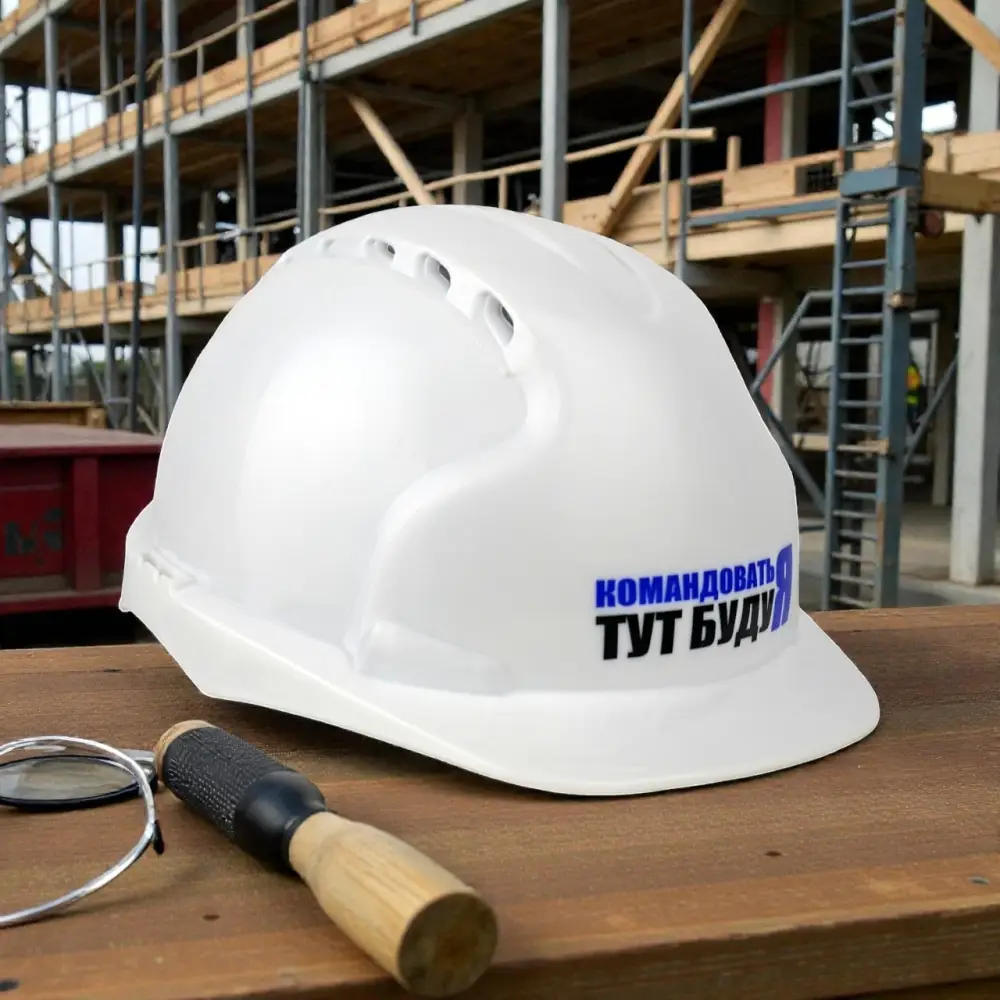 Каска защитная КОМАНДОВАТЬ ТУТ БУДУ Я с храповым механизмом
