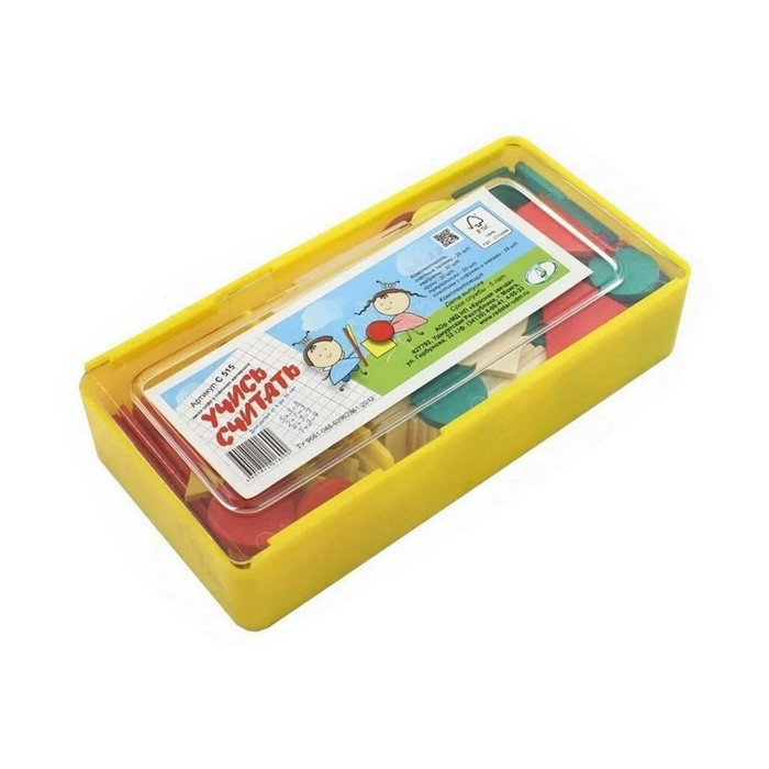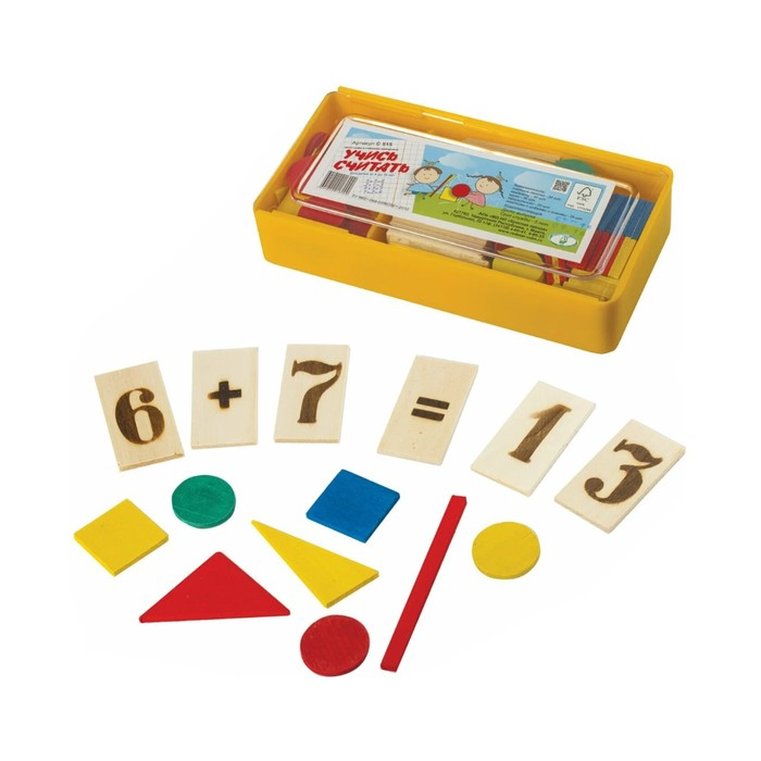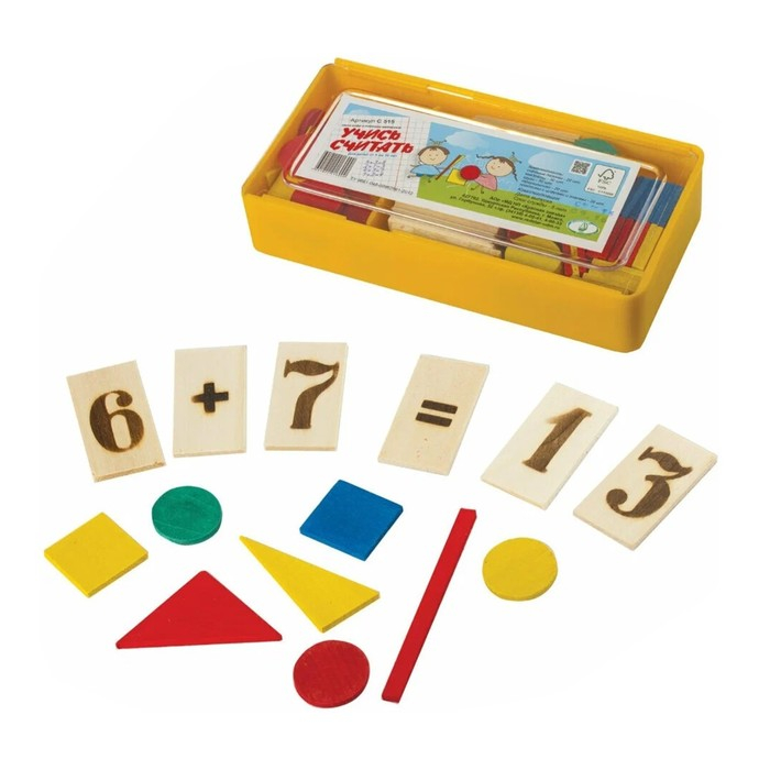 Касса цифр и счетного материала "Учись считать", 128 предметов, Красная звезда (Можга), дерево береза, С515