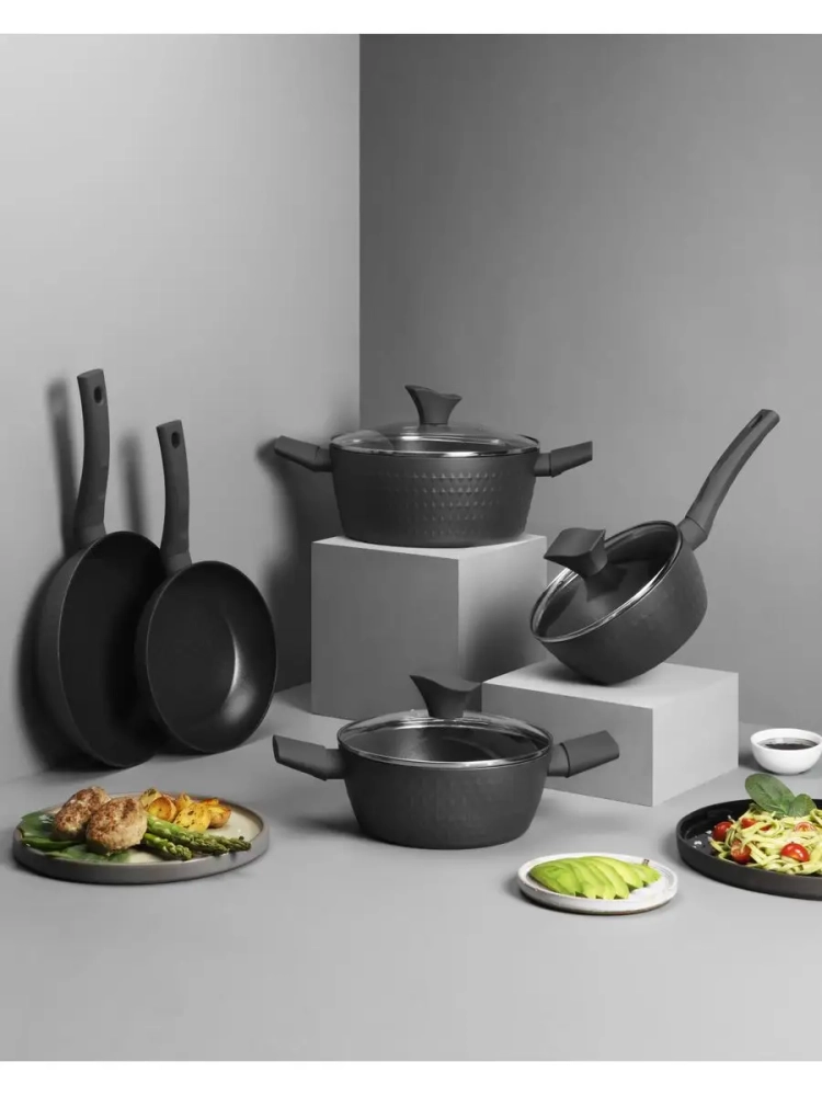 Корпус изделия выполнен из кованого алюминия, что обеспечивает равномерное распределение температуры во время приготовления пищи и максимально долгое сохранение тепла готовых блюд, в отличие от эмалированной посуды и посуды из нержавеющей стали. Внутренняя рифлёная поверхность 3D COOK TECHNOLOGY позволяет приготовить любимые блюда с минимальным количеством масла, сохраняя натуральный вкус продуктов.