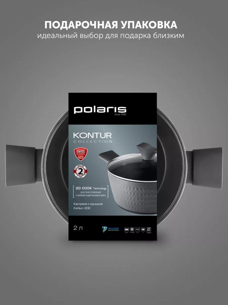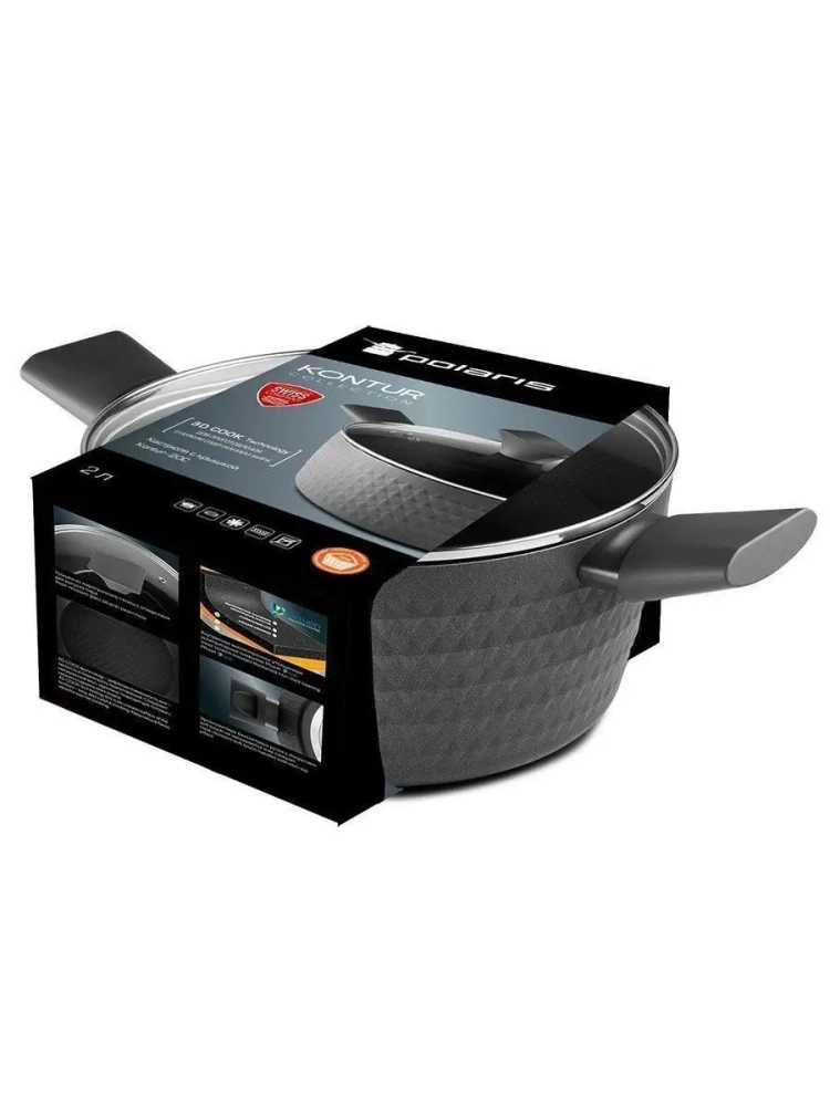 Кастрюля Поларис - универсальный помощник каждой хозяйки! Модель Kontur 20C (объем 2 литра) подходит для разных задач: варки, тушения, приготовления соусов и супов. Кастрюля Polaris для индукции – это сочетание стиля и практичности. Необычный дизайн и красивые элементы сделают кастрюлю отличным подарком для дома, особенно для мамы на День Рождения или 8 марта.