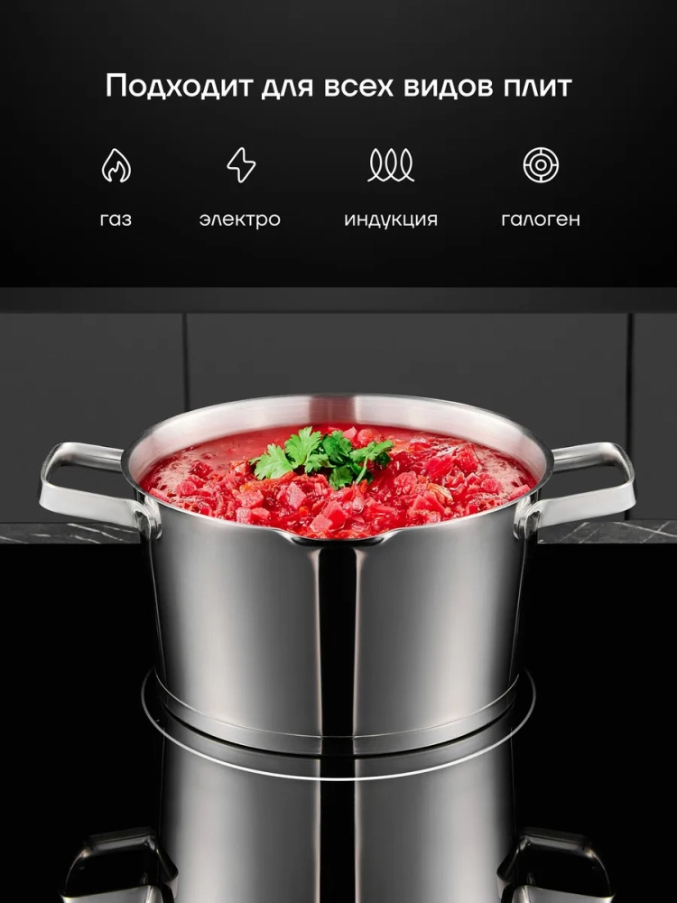 Кастрюля изготовлена из высококачественной нержавеющей медицинской стали 18/10, что обеспечивает защиту от коррозии и предотвращает размножение вредных организмов благодаря антибактериальным свойствам материала, в отличие от алюминиевых и эмалированных изделий. Посуда из медицинской нержавеющей стали отличается прочностью и износостойкостью, а также одобрена Европейским союзом для использования в пищевой промышленности. Гарантия на изделие 25 лет.