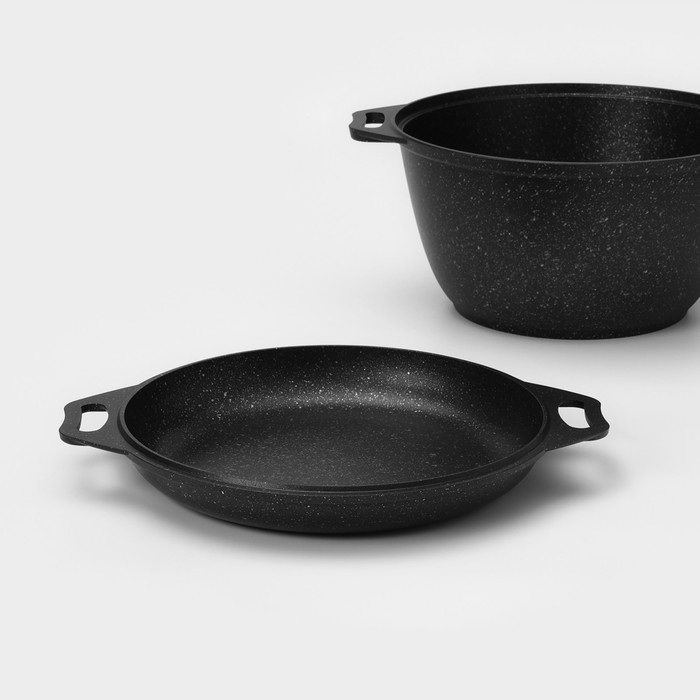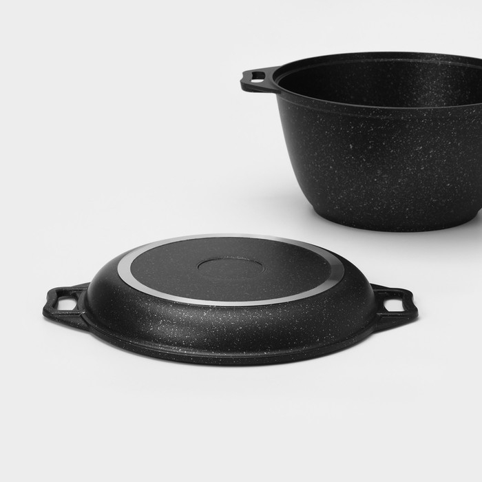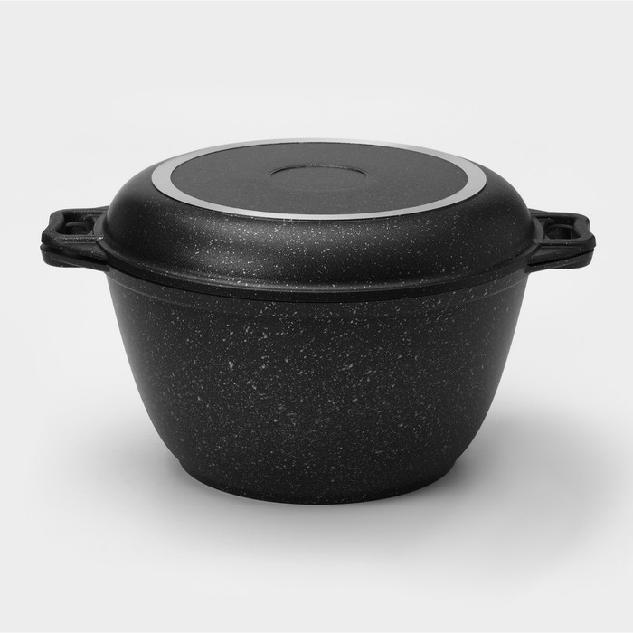 Казан с крышкой-сковородой, 4 л, литые ручки, антипригарное покрытие, цвет чёрный