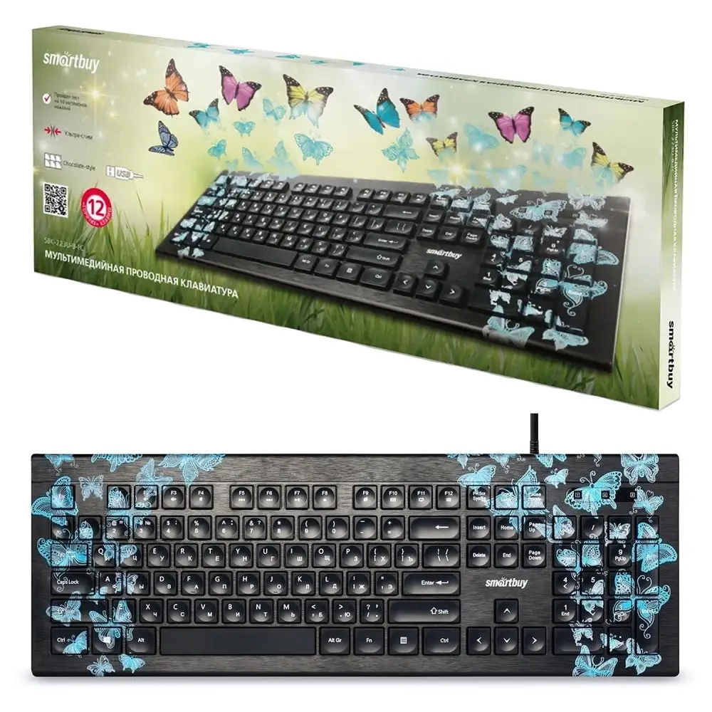 Клавиатура проводная Smartbuy с принтом Butterflies 223U USB черная