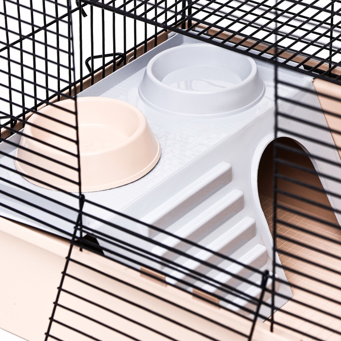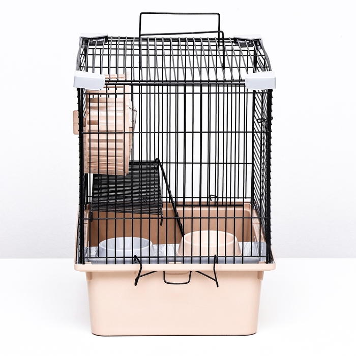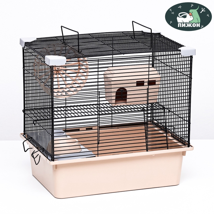 Клетка для грызунов "Пижон" №10, 2 этажа, разборная, 42 х 30 х 37см (+домик,колесо,миска), бежевая