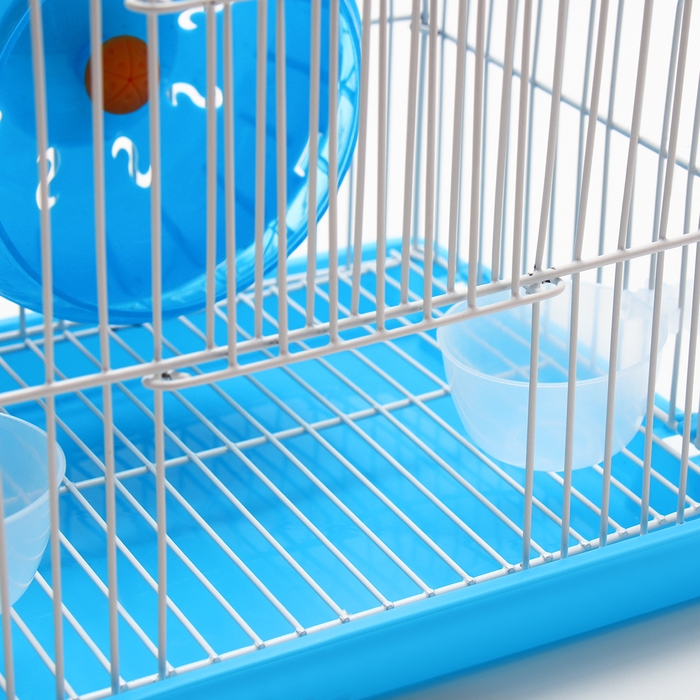 Внутри клетки есть беговое колесо, которое поможет вашему грызуну поддерживать физическую форму и заняться любимым делом.